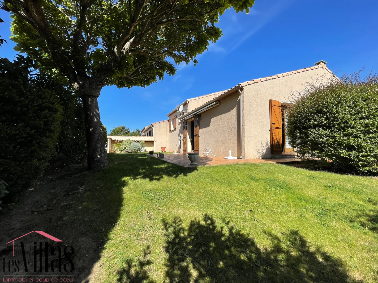 Le bel espace de vie s'ouvre sur un joli jardin arboré dans lequel vous pourrez installer un jacuzzi ou une piscine.