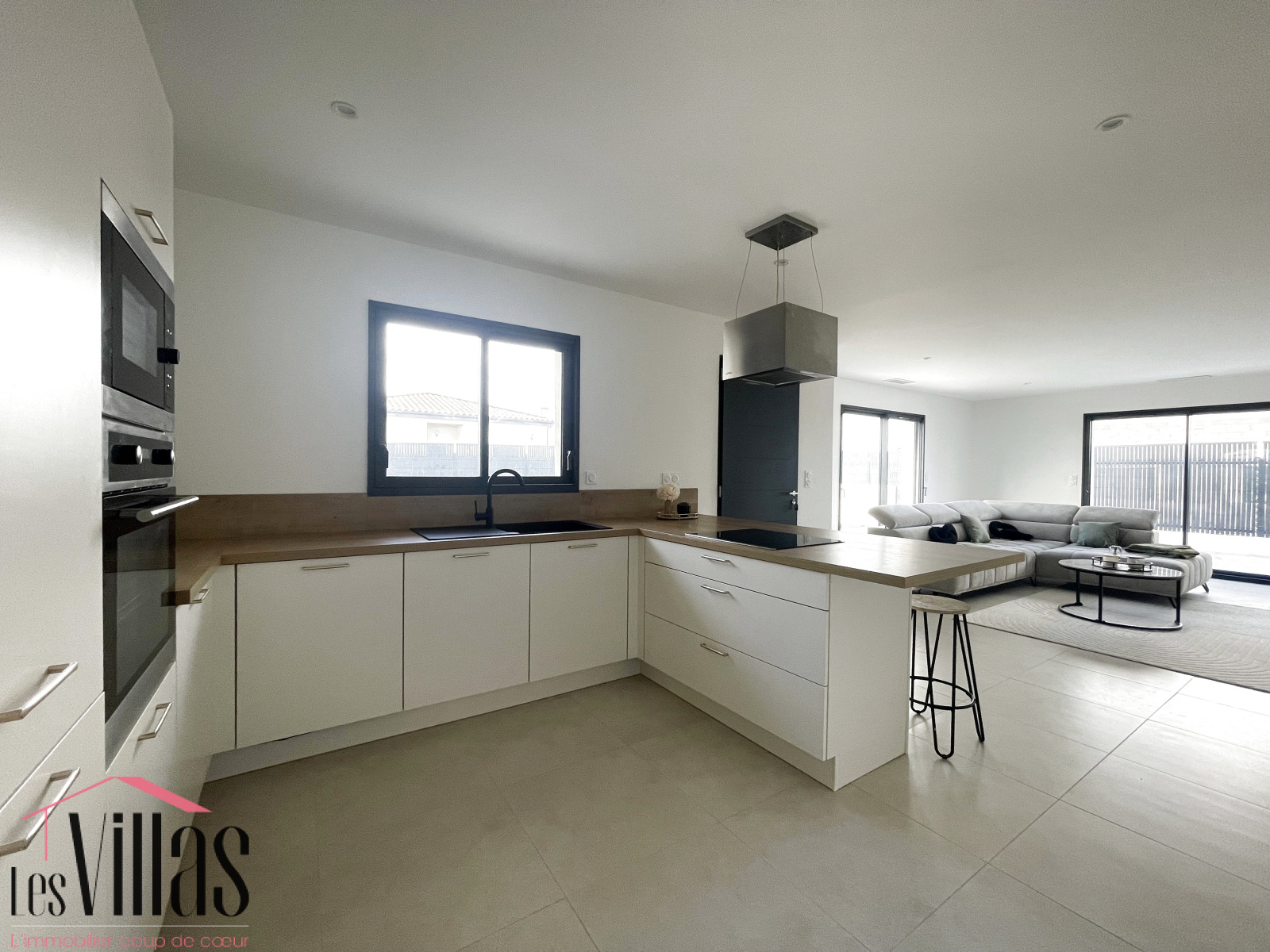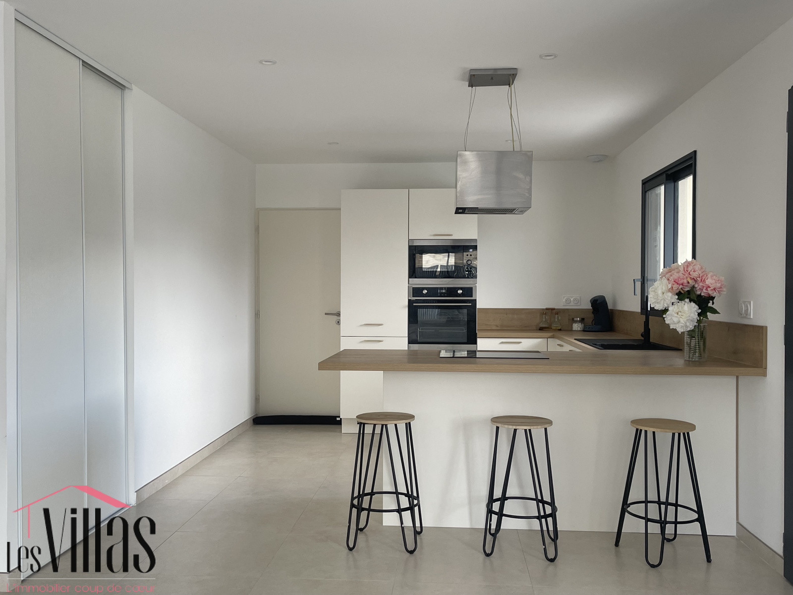 La maison offre une belle pièce de vie lumineuse avec cuisine ouverte, moderne et fonctionnelle, prolongée par un cellier très pratique faisant le lien entre le garage, les extérieurs et la cuisine. L'ensemble s'ouvre sur la terrasse et la piscine, créant un espace convivial et facile à vivre au quotidien.