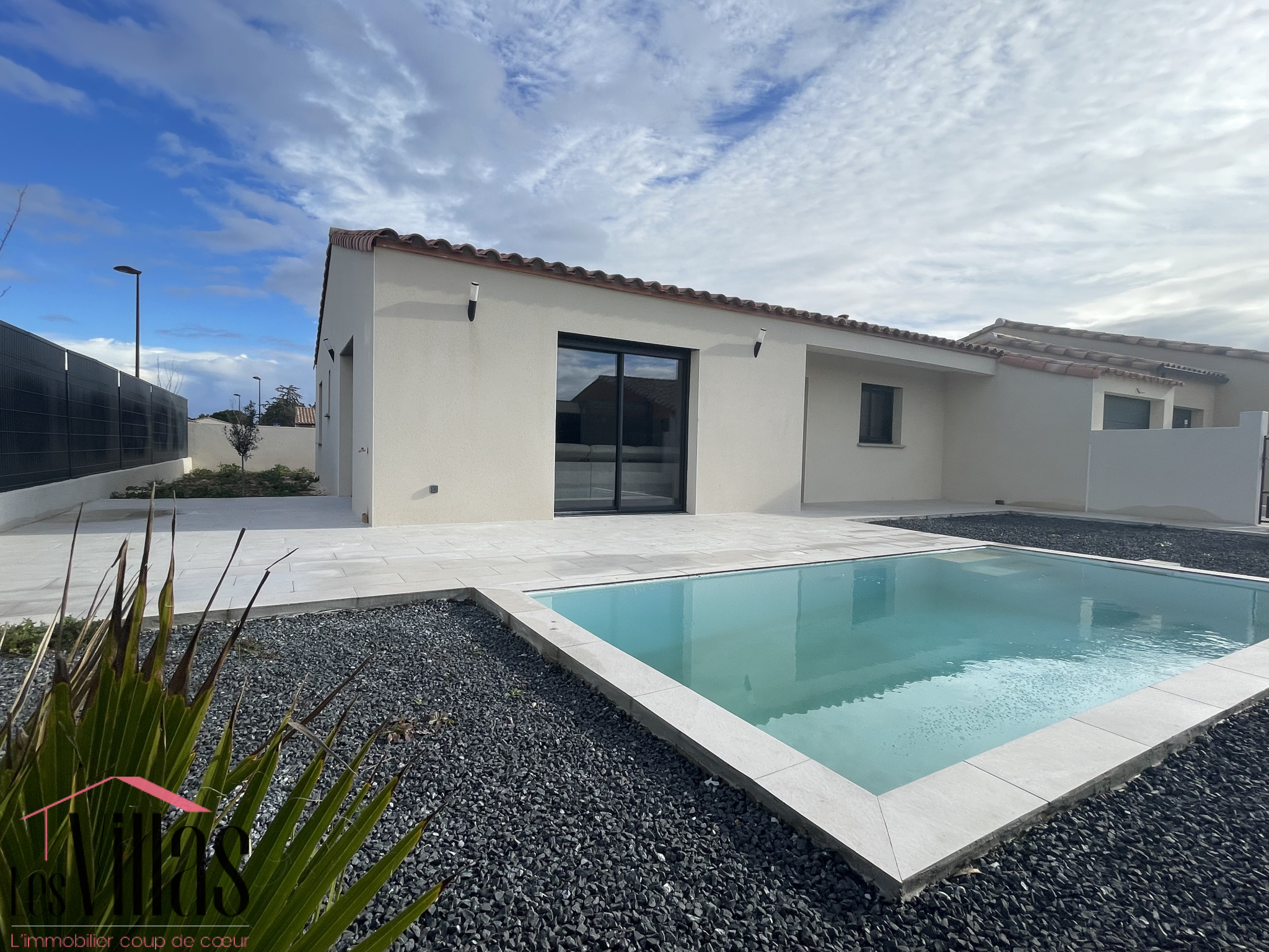 Maison récente de plain pied d’environ 100 m2, située dans un village agréable avec commerces, à 25 min de Narbonne, DPE A.