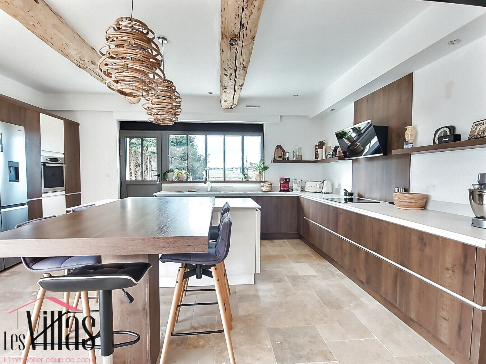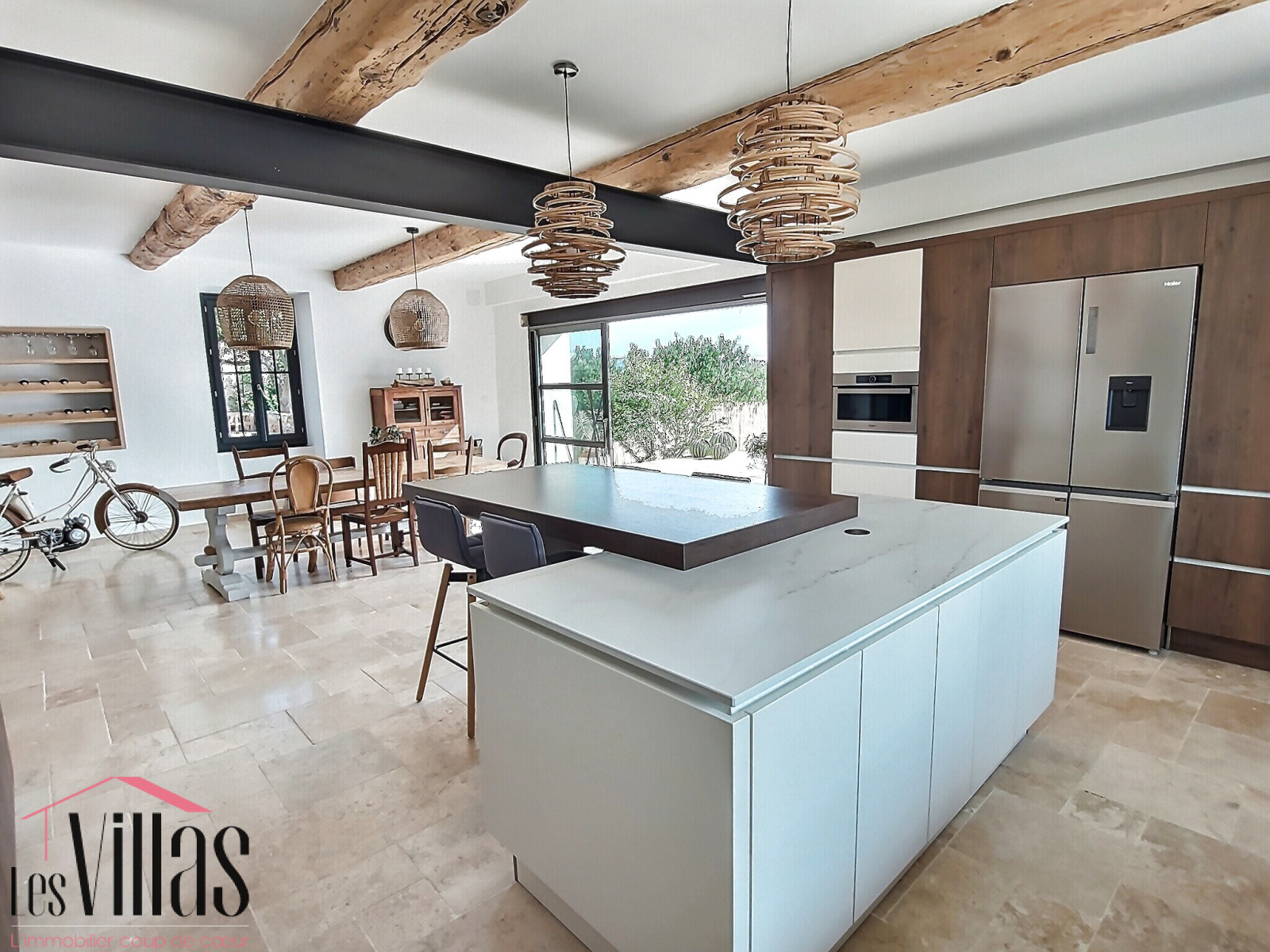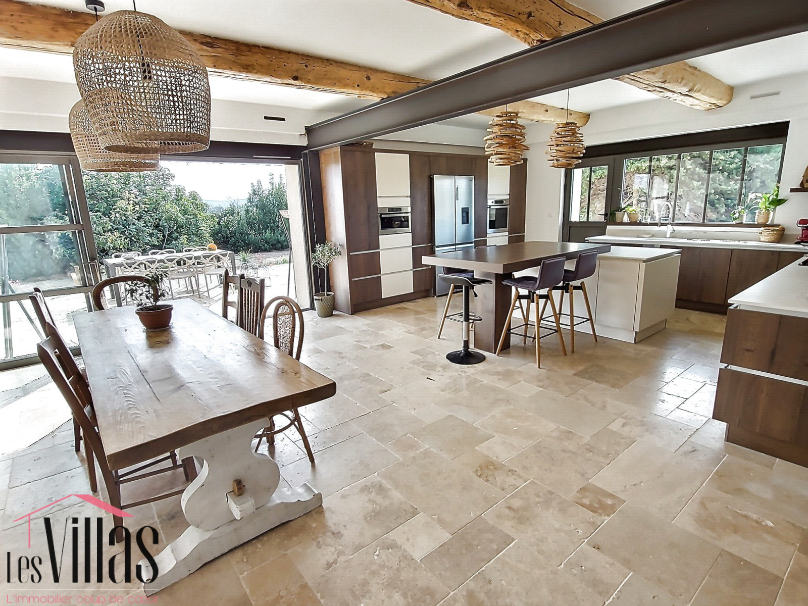 Au rez-de-chaussée, vous trouverez une spacieuse et lumineuse cuisine ouverte sur la salle à manger. Par une grande baie vitrée, vous accédez à la terrasse avec vue sur la piscine et sur le jardin de plus de 3300 m2.