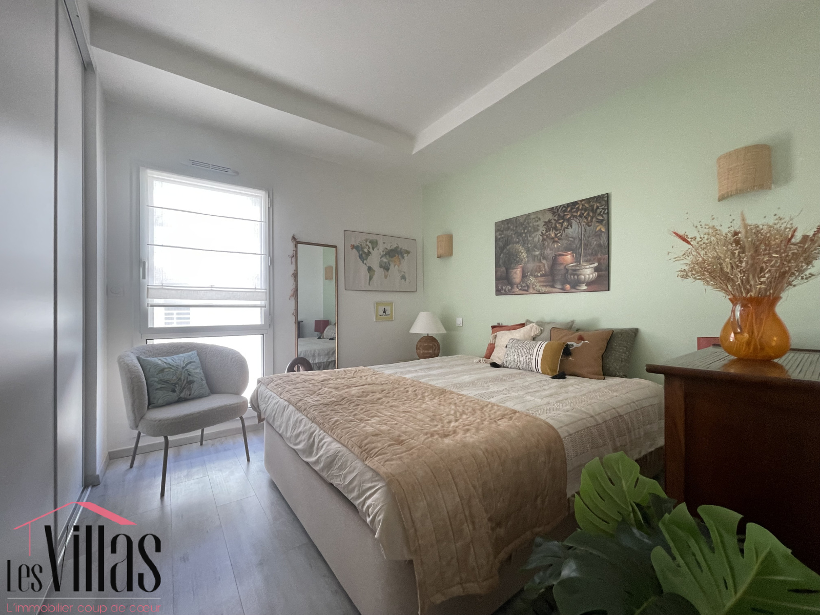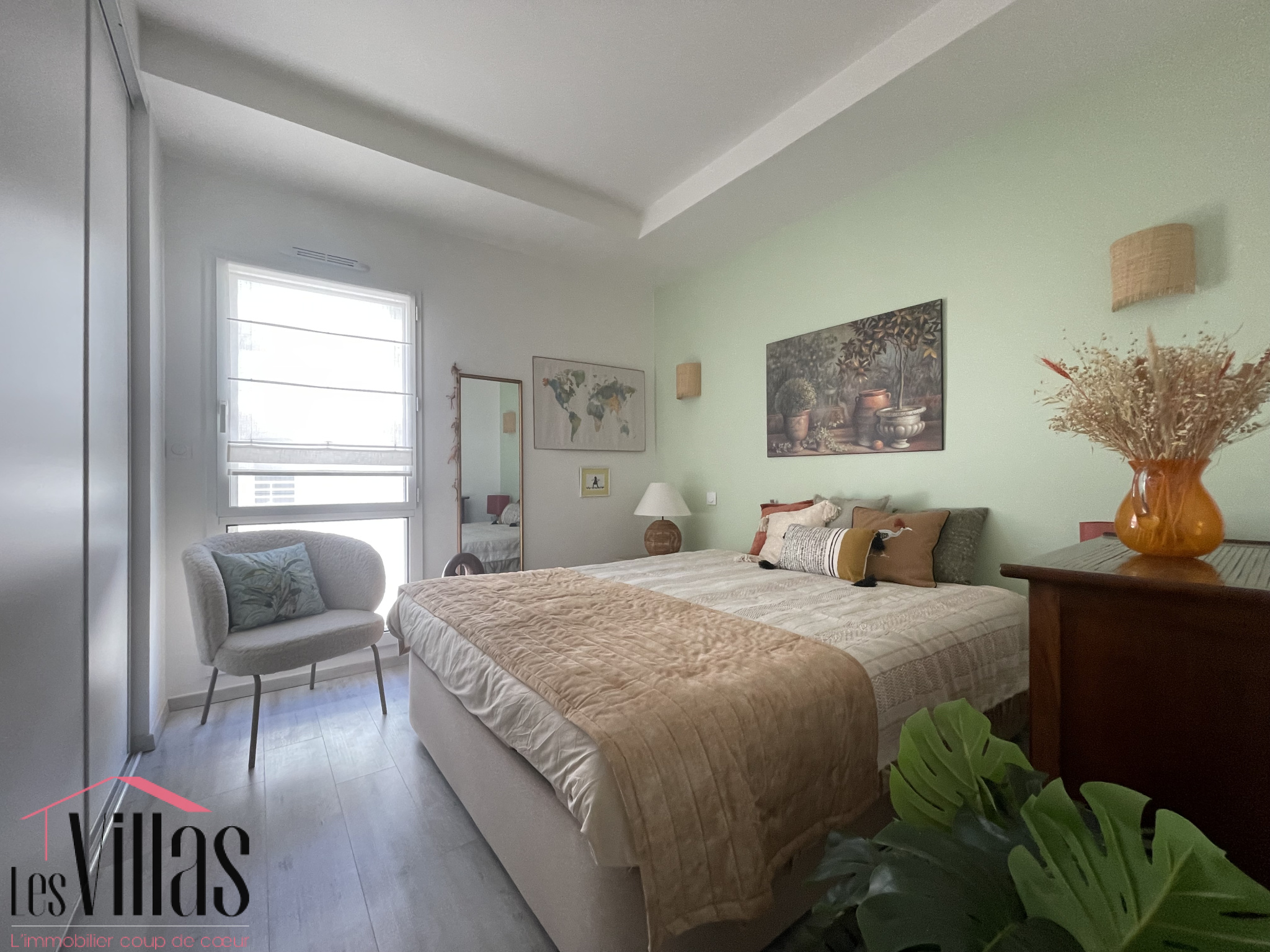 Il est constitué d'une très grande pièce de vie lumineuse avec une cuisine ouverte et dinatoire, d'une suite parentale avec salle de bain et dressing, d'une 2ème chambre avec placards aménagés et salle d'eau, d'un toilette indépendant et d'un cellier.