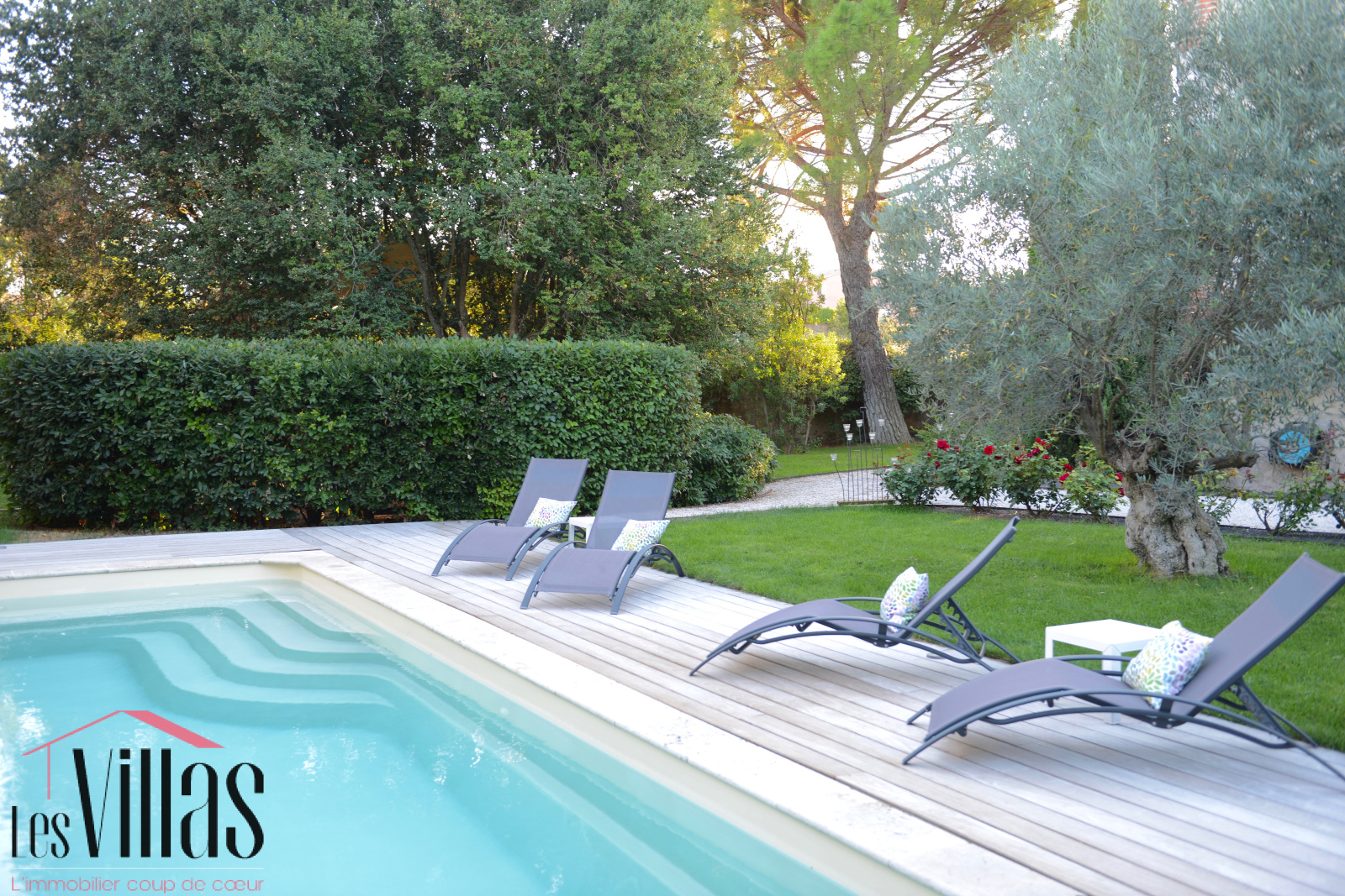 À l’extérieur, le charme opère pleinement. Sur un terrain d’environ 1 000 m², le jardin paysagé devient un véritable écrin de détente. La piscine promet des après-midis ensoleillés bercés par le chant des cigales, tandis que le jacuzzi offre des parenthèses de bien-être, sous un ciel étoilé.