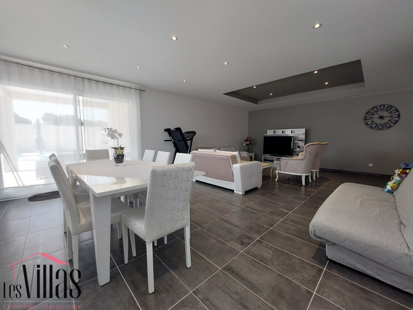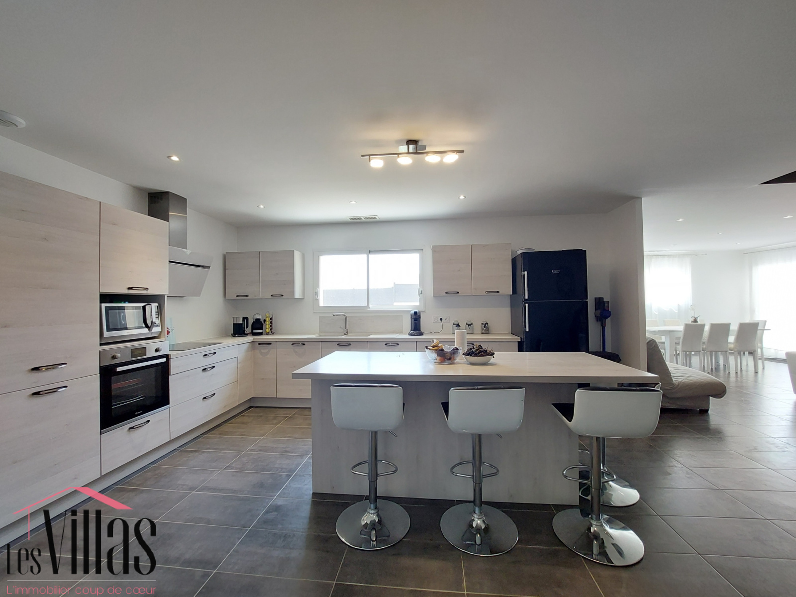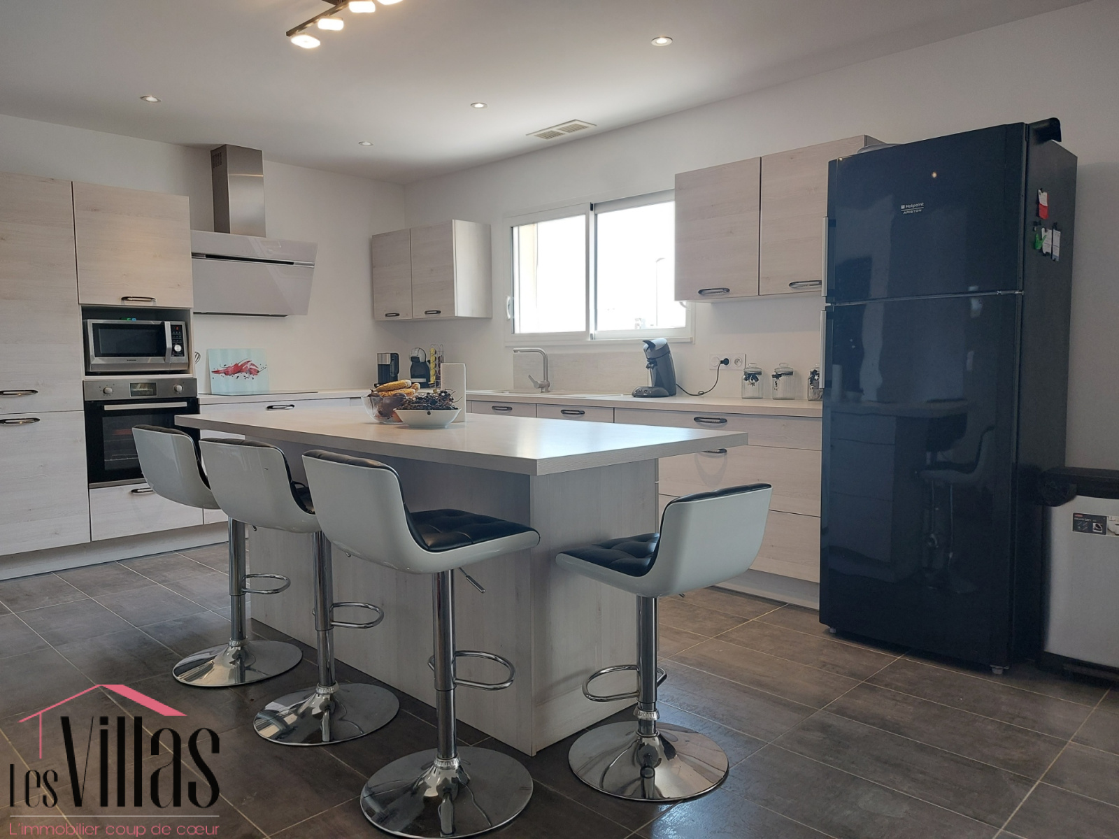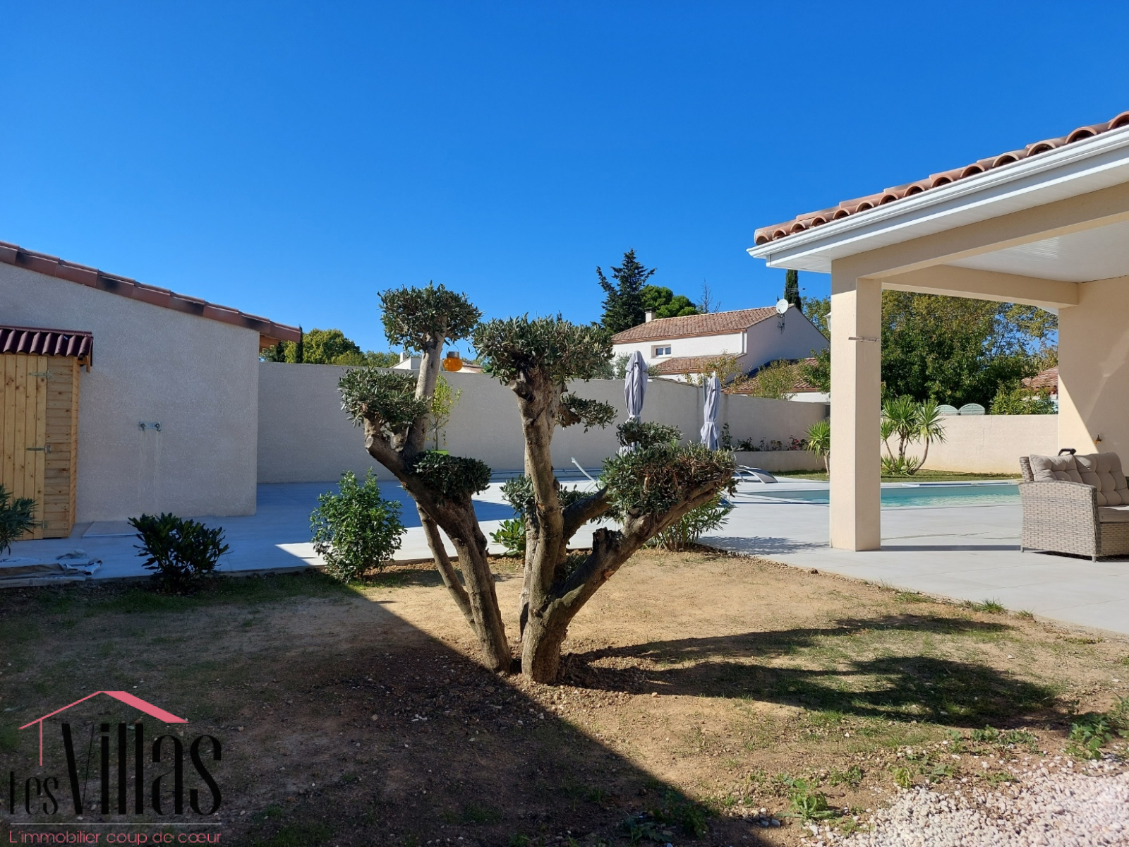 A 25 min. de Narbonne et proche du Canal du Midi, magnifique villa de plain-pied sur un terrain de 950 m2 entièrement clos et sans vis-à-vis. Dès l'entrée, vous serez séduit par les volumes et la luminosité qui baigne toutes les pièces grâce aux nombreuses baies vitrées. La cuisine américaine moderne et complètement équipée est ouverte sur le vaste salon/séjour avec accès direct à la grande terrasse couverte. 4 belles chambres avec placards dont une suite parentale avec salle d'eau et dressing, une salle de bain avec baignoire, douche et wc, un second wc indépendant, un bureau, une buanderie et un garage. Une piscine 8x4, un coin repas ombragé, une douche et un wc extérieurs complètent les prestations de cette très jolie maison. Climatisation gainable réversible, volets et portail électrique. A découvrir sans tarder. Les honoraires sont à la charge du vendeur. Contact : Sandra Cardon - Tél. 07.88.72.28.11 - Immatriculée au RSAC Narbonne 892302027