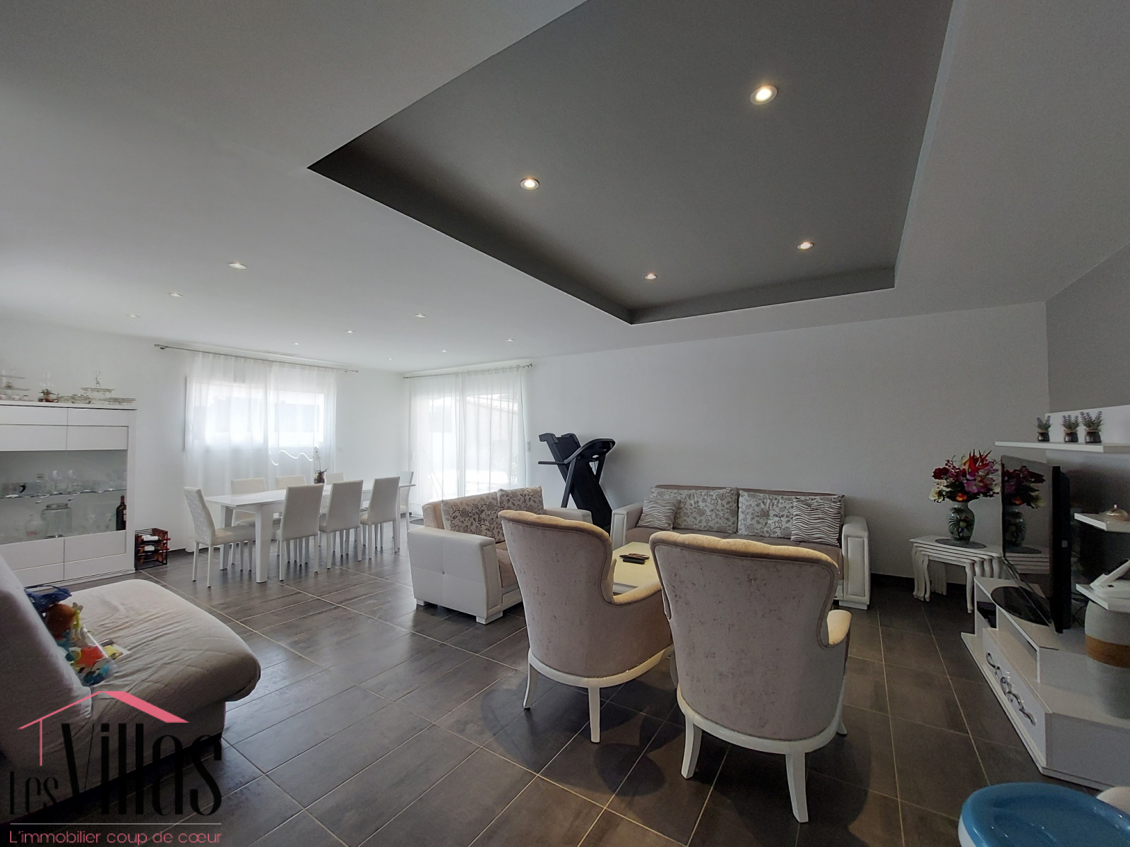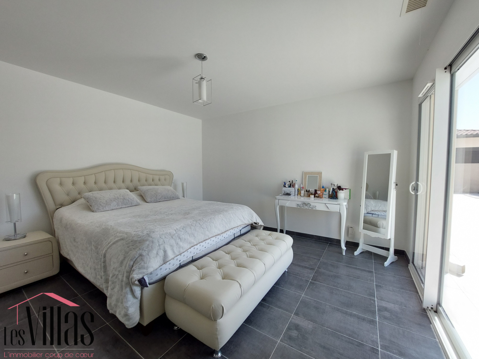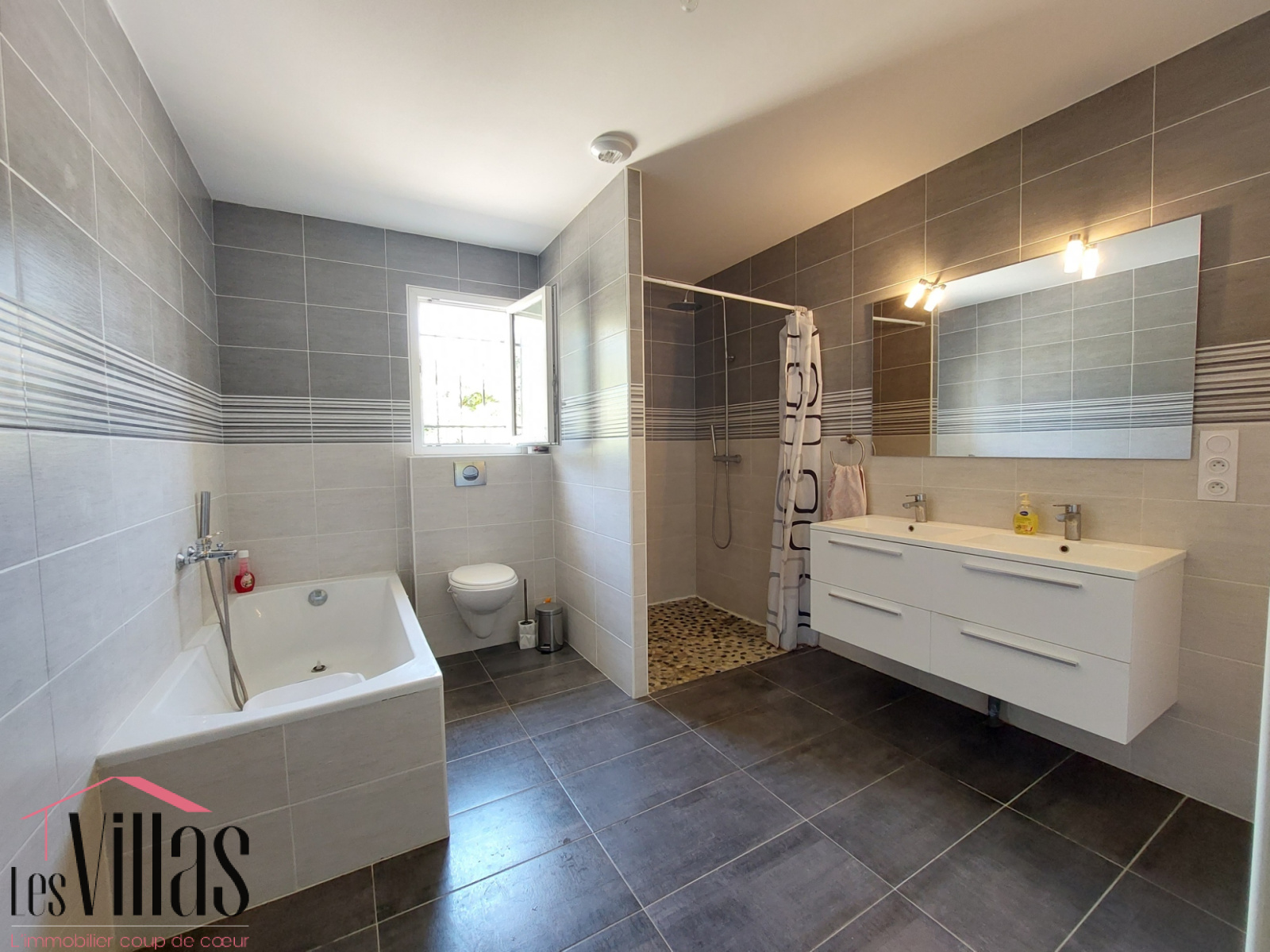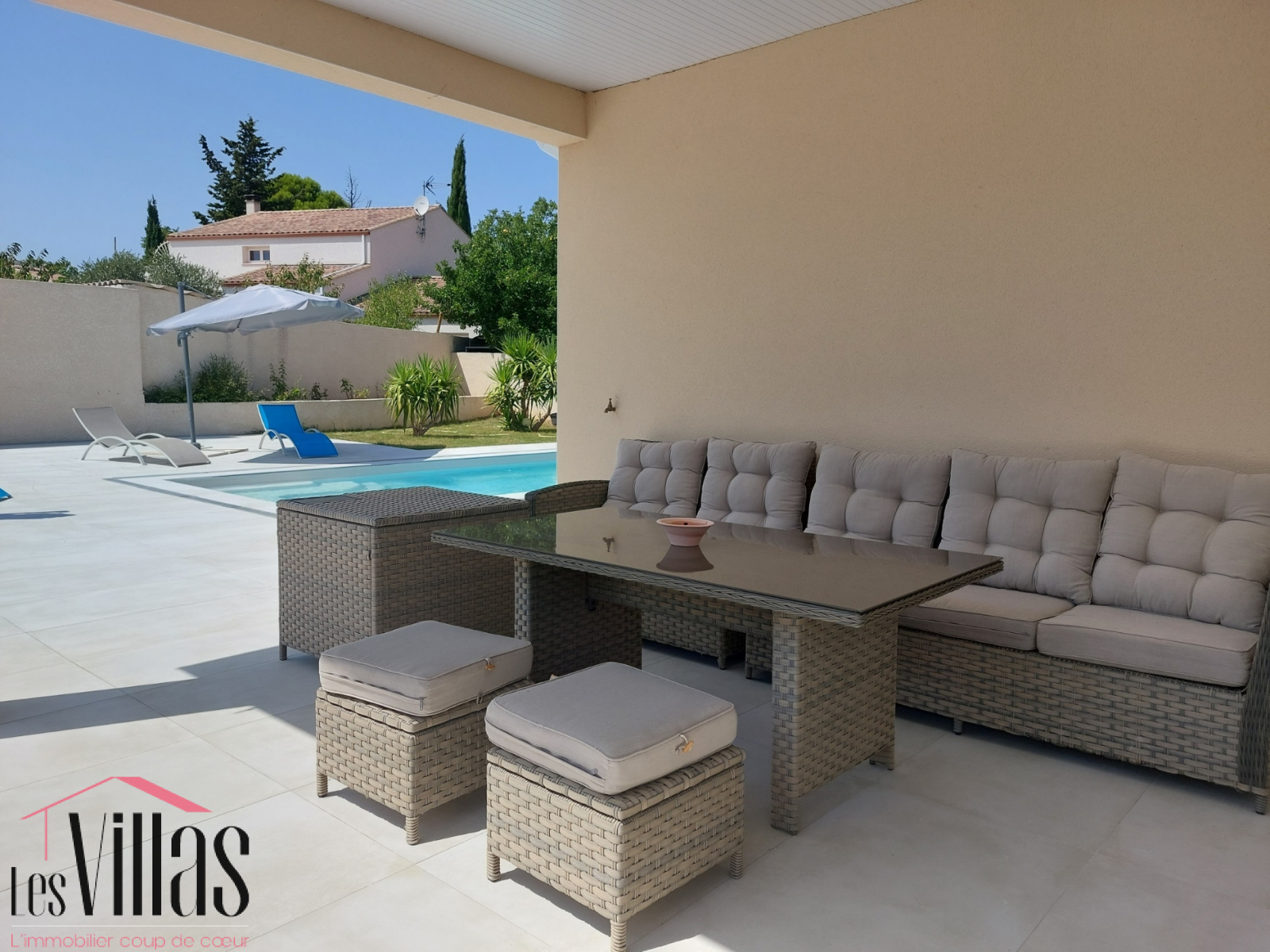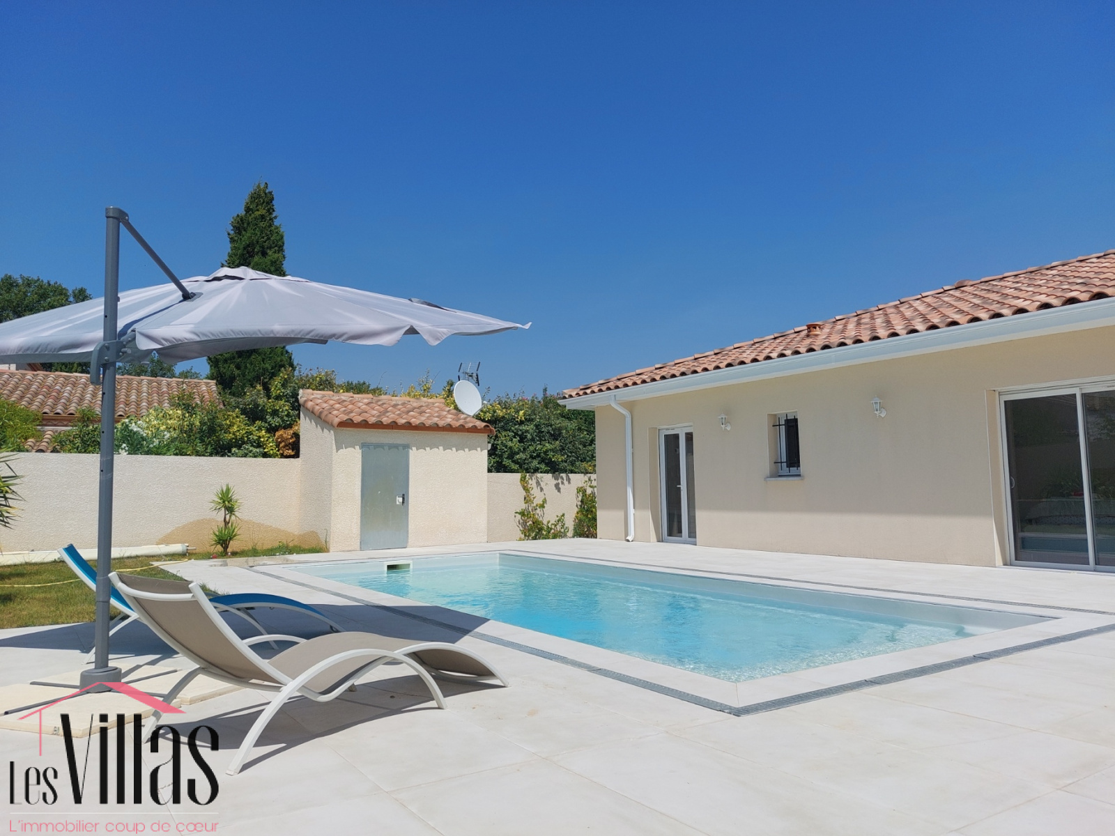 A 25 min. de Narbonne et proche du Canal du Midi, magnifique villa de plain-pied sur un terrain de 950 m2 entièrement clos et sans vis-à-vis. Dès l'entrée, vous serez séduit par les volumes et la luminosité qui baigne toutes les pièces grâce aux nombreuses baies vitrées. La cuisine américaine moderne et complètement équipée est ouverte sur le vaste salon/séjour avec accès direct à la grande terrasse couverte. 4 belles chambres avec placards dont une suite parentale avec salle d'eau et dressing, une salle de bain avec baignoire, douche et wc, un second wc indépendant, un bureau, une buanderie et un garage. Une piscine 8x4, un coin repas ombragé, une douche et un wc extérieurs complètent les prestations de cette très jolie maison. Climatisation gainable réversible, volets et portail électrique. A découvrir sans tarder. Les honoraires sont à la charge du vendeur. Contact : Sandra Cardon - Tél. 07.88.72.28.11 - Immatriculée au RSAC Narbonne 892302027