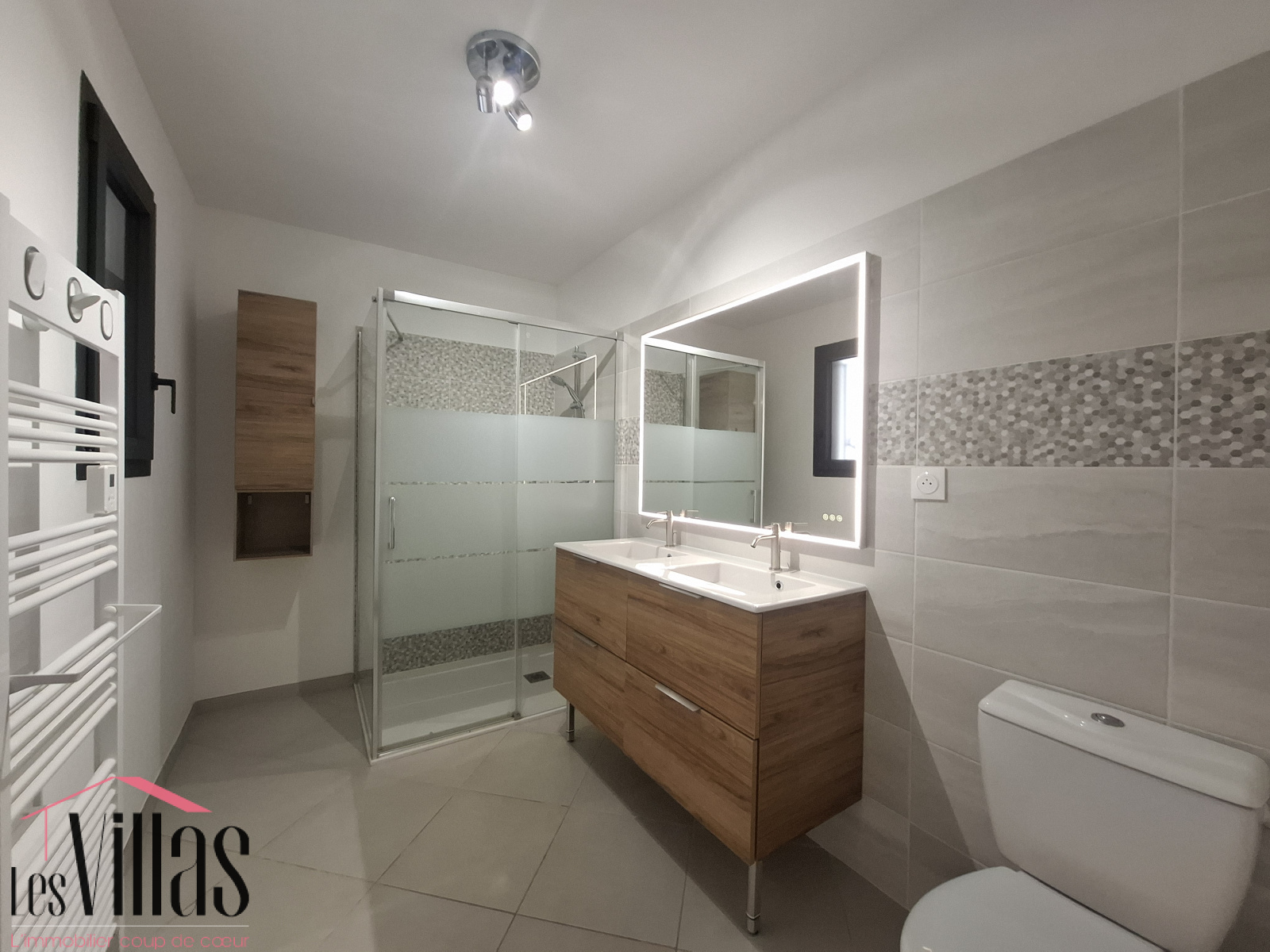 Très récente, cette propriété séduit dès l’entrée par ses volumes généreux et sa luminosité. La vaste pièce de vie, baignée de lumière grâce à de larges ouvertures, constitue un véritable cœur de maison. Elle accueille un salon convivial, une salle à manger chaleureuse et une cuisine moderne, idéale pour partager des moments en famille ou entre amis.