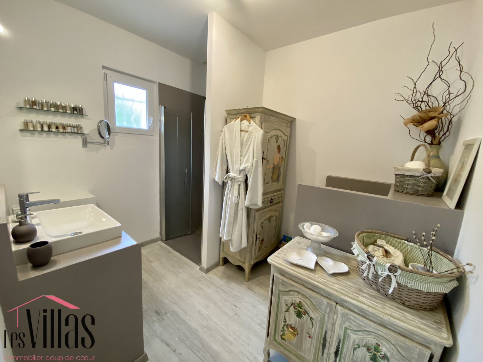 Un espace détente entièrement indépendant avec lavabo, climatisation réversible et baies vitrées offre une surface de 30 m2 qui pourrait être transformée en une chambre supplémentaire ou un gîte indépendant.