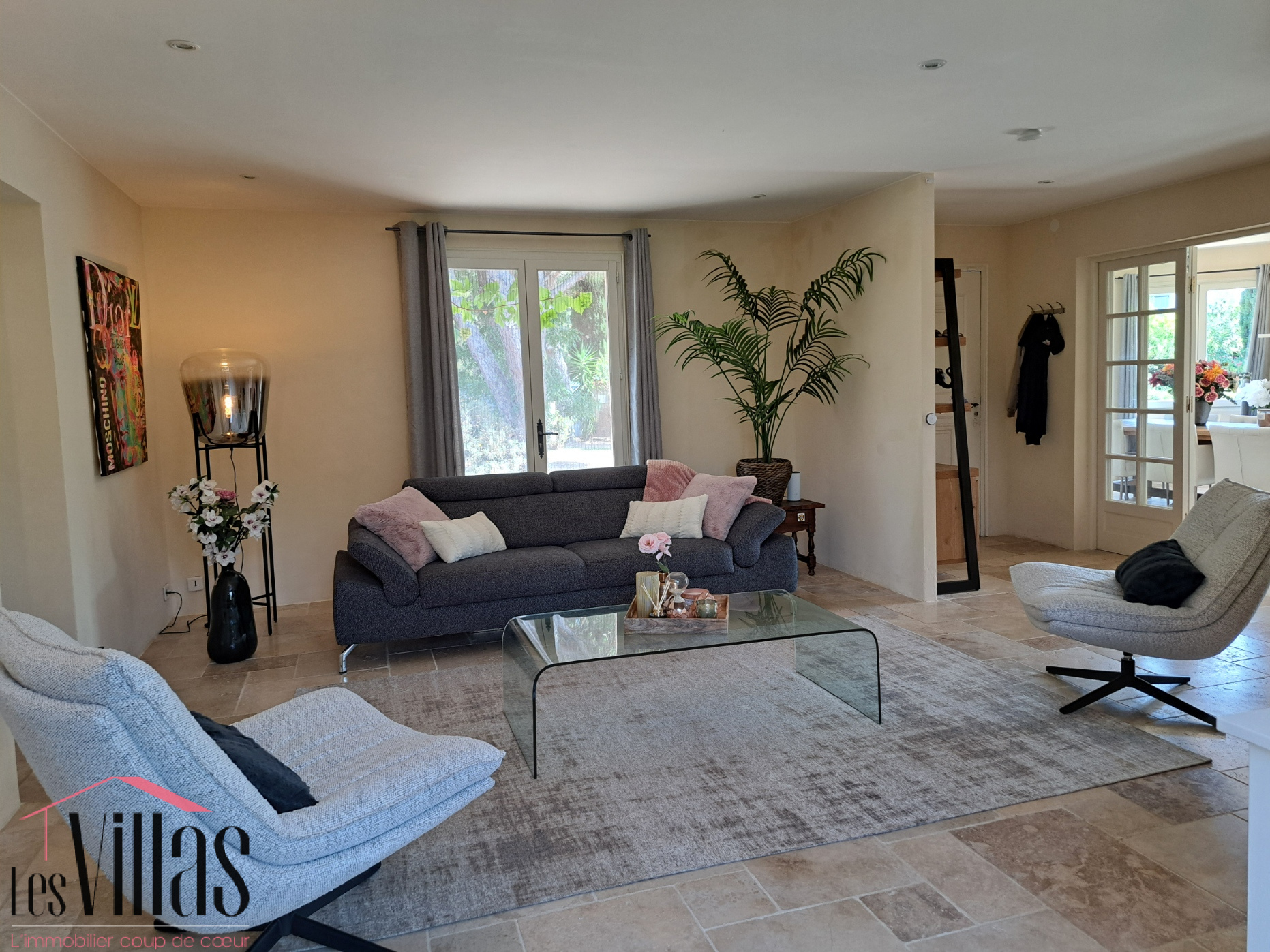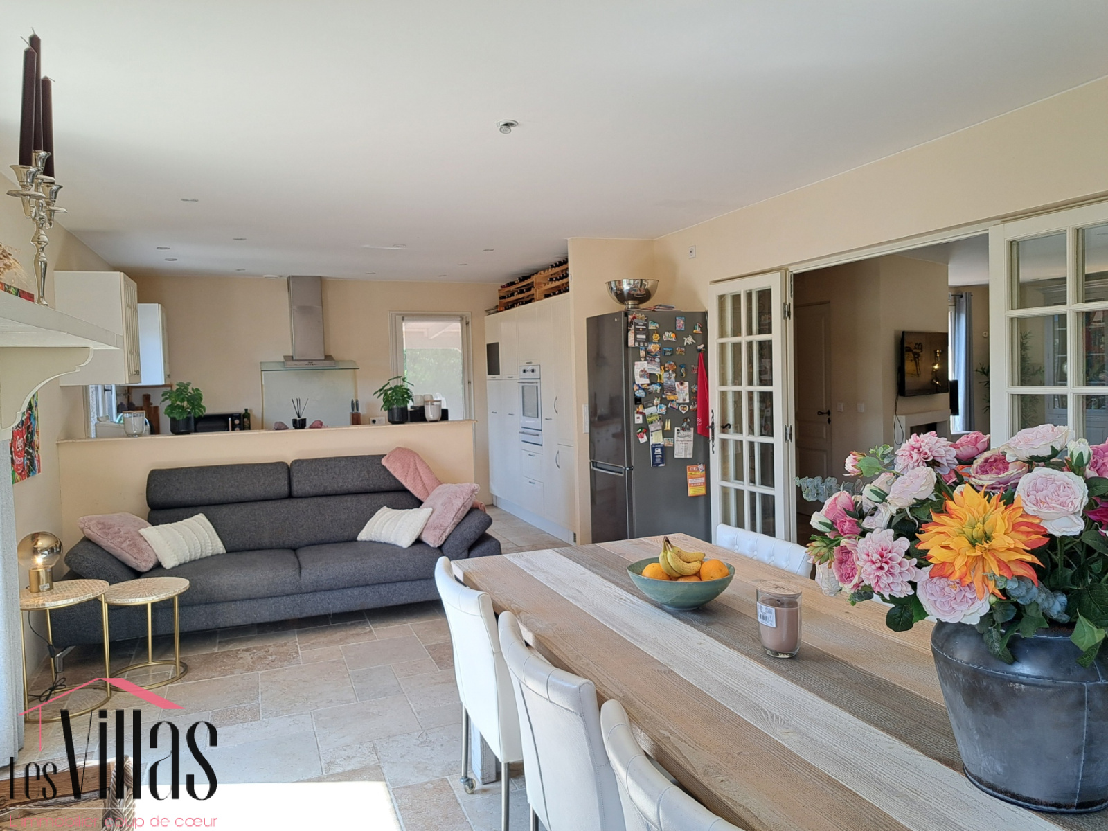 Cette villa a été entièrement rénovée avec beaucoup de goût et propose en rez-de-chaussée un très beau séjour, une salle à manger avec cuisine ouverte de 42 m2, 2 belles chambres communiquant toutes deux sur une salle de bain avec douche et baignoire.