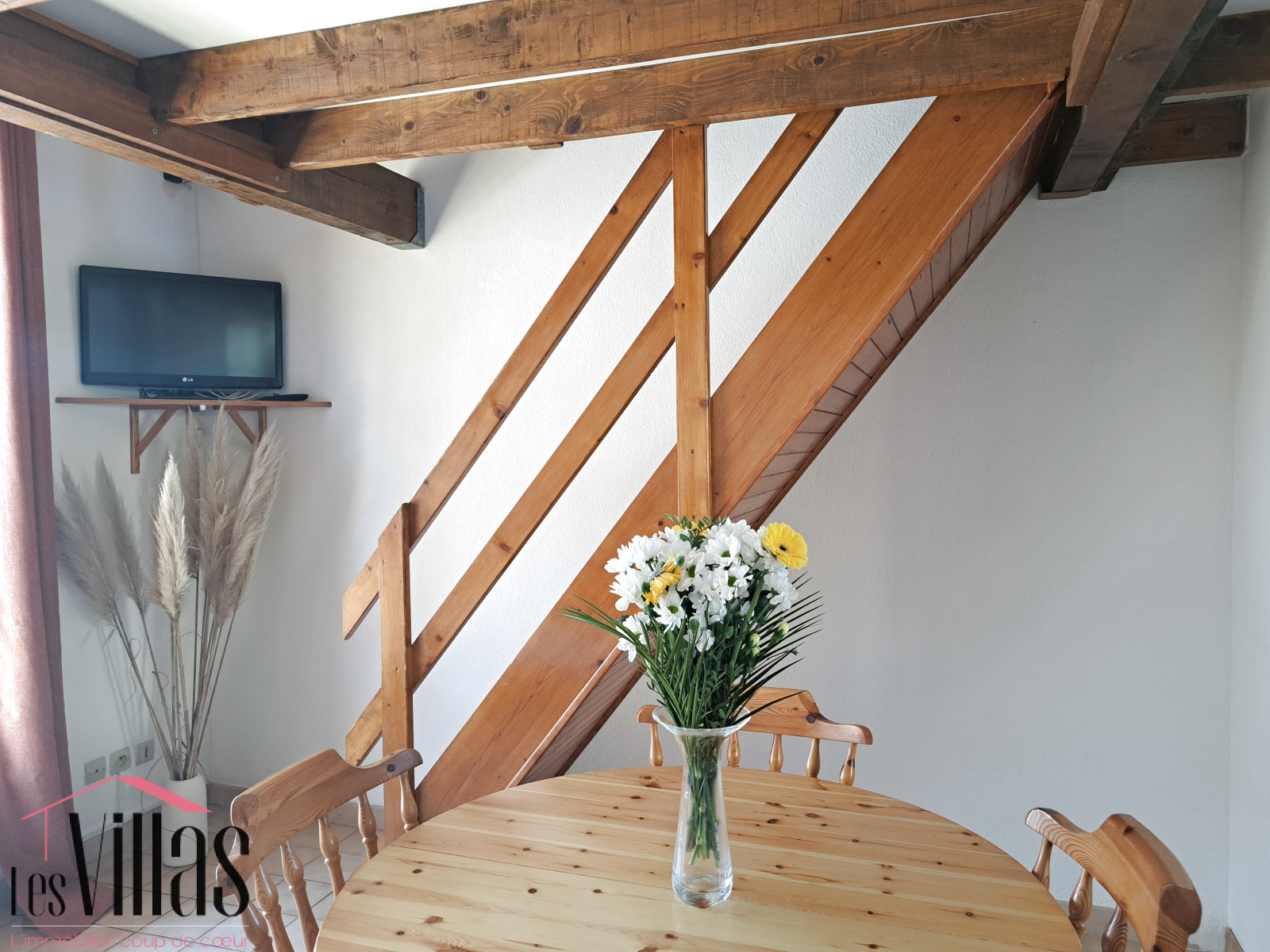 Le rez-de-chaussée propose un séjour lumineux avec kitchenette, ainsi qu'une salle d'eau avec WC. A l'étage, une chambre a été aménagée en mezzanine.