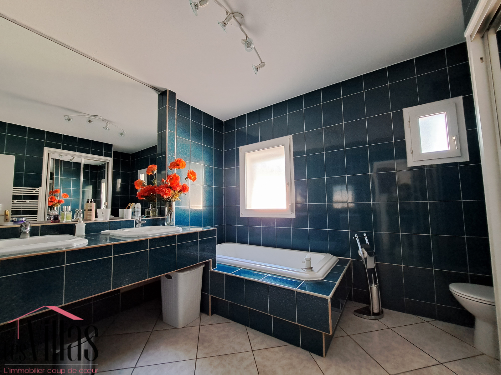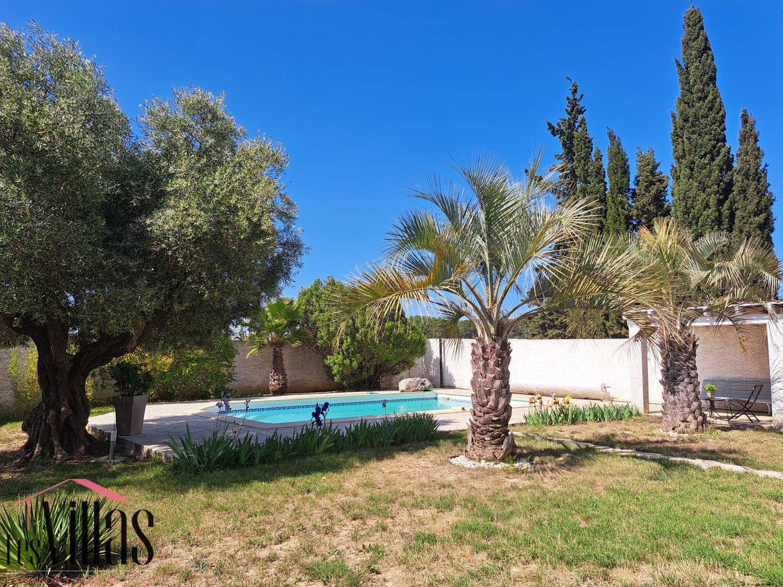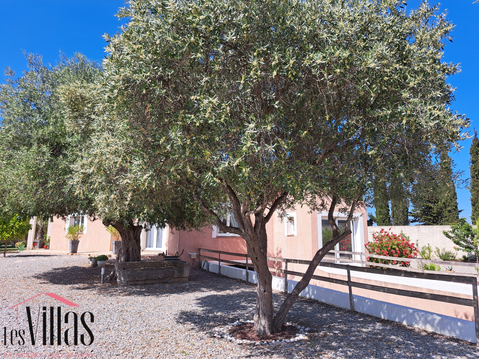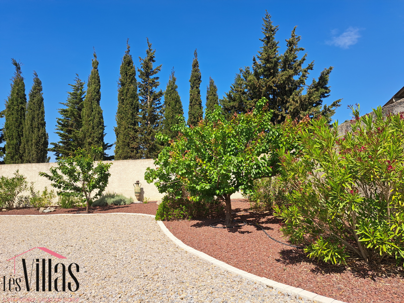Toute la maison est tournée vers le magnifique jardin qui donne une impression d’immersion dans la nature. Le jardin met en scène divers espaces tels que le verger, le potager et l'espace piscine avec sa cuisine d'été. on y retrouve également des arbres méditerranéens dont 5 beaux oliviers centenaires.