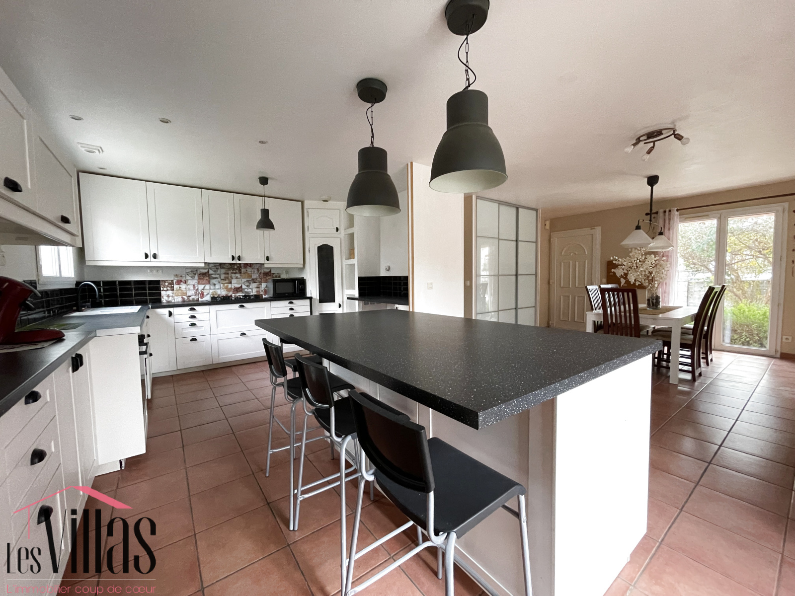 Dès l’entrée, laissez vous séduire par la pièce de vie lumineuse, composée d’un salon spacieux et d’une salle à manger chaleureuse communiquant avec une cuisine ouverte. Cette dernière, moderne et équipée, dispose de nombreux rangements, de plans de travail généreux et d’un îlot central convivial, idéal pour partager des moments en famille ou entre amis.