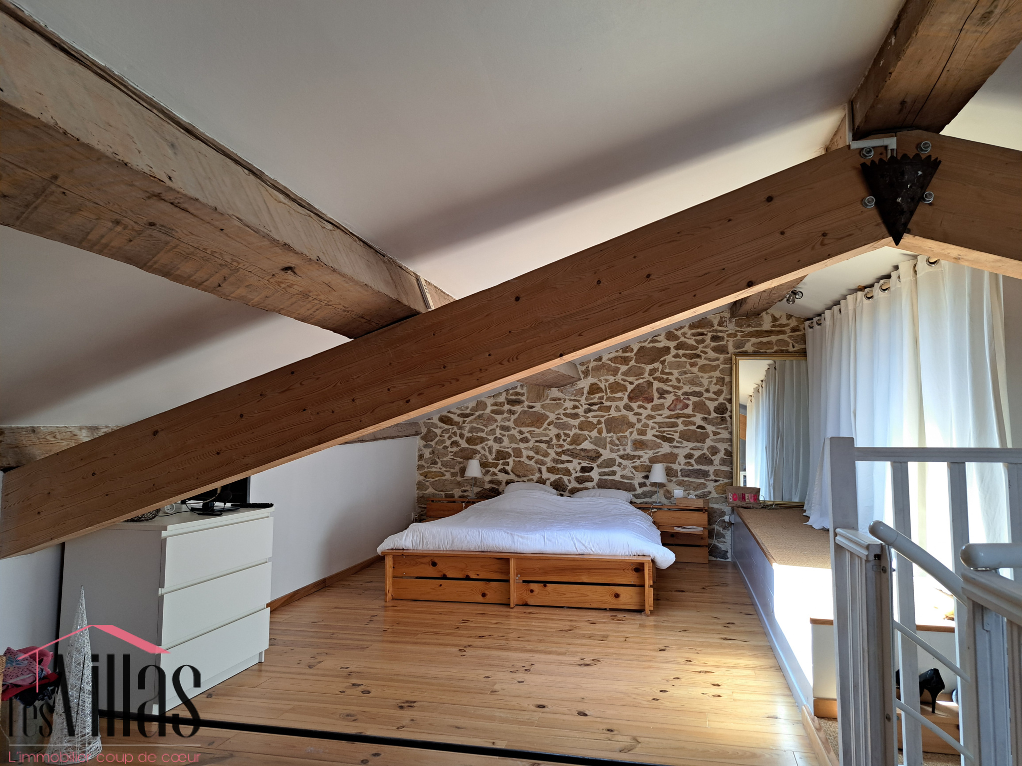Au deuxième étage, une chambre sous combles offre un espace intimiste pouvant également être aménagé en salle de jeux ou en coin lecture.