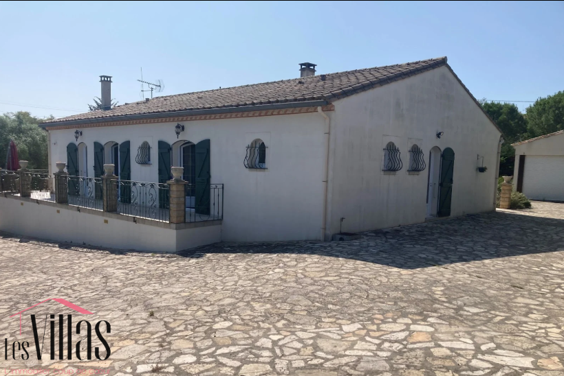 Villa de plain-pied à 15 minutes de Lézignan Corbières avec vue dégagée sur la montagne noire sur terrain de 3000 m2 parfaitement clos et arboré.