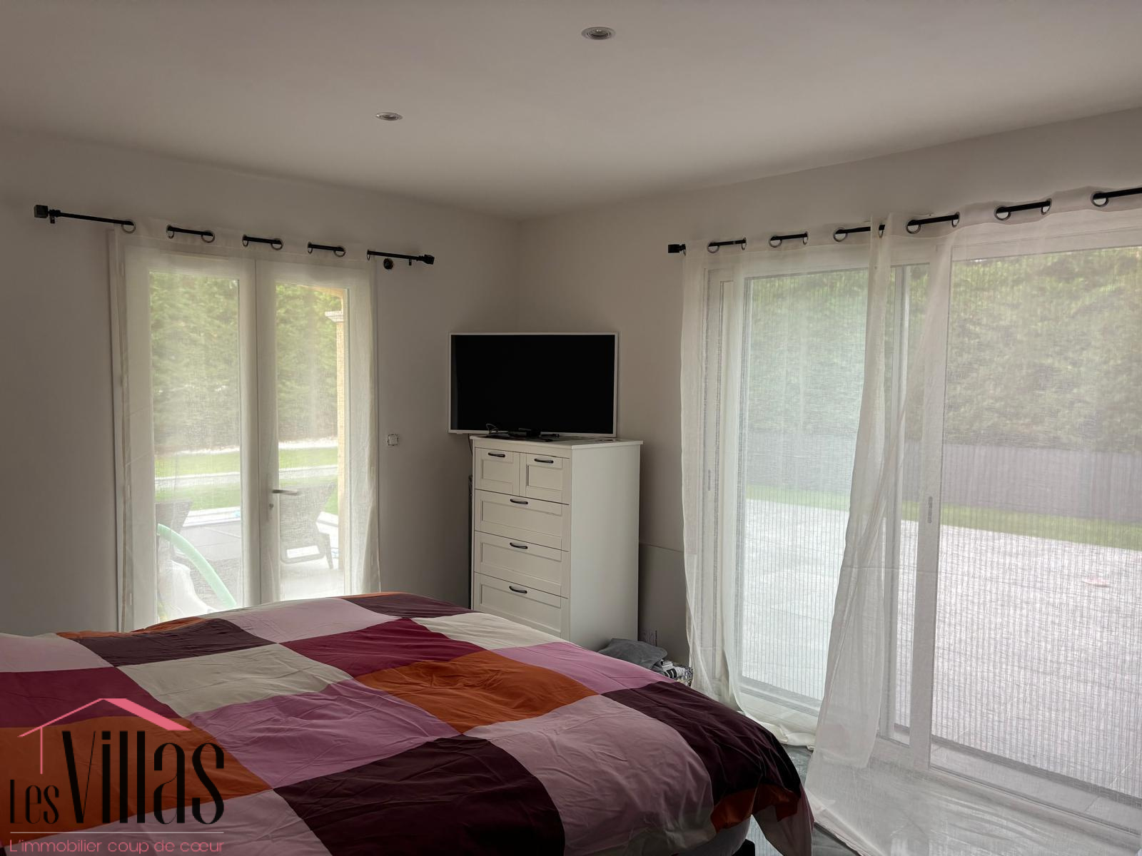 En RDC se situe également la chambre parentale climatisée donnant sur la piscine, salle d'eau privative avec 2 vasques, et douche à l'italienne.