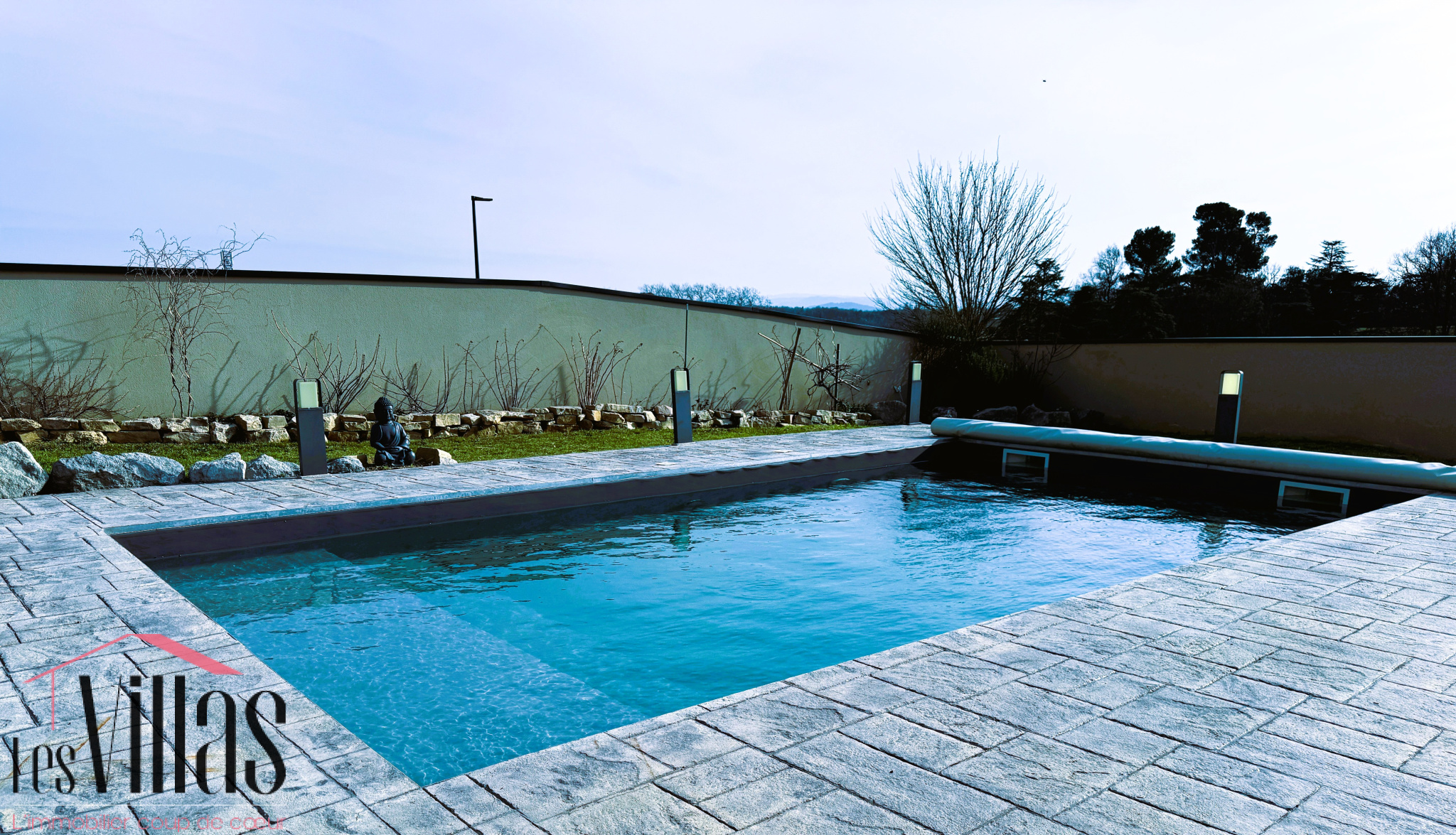Dotée de panneaux solaires, Baies et fenêtres alu, volets roulants avec fermeture à distance.