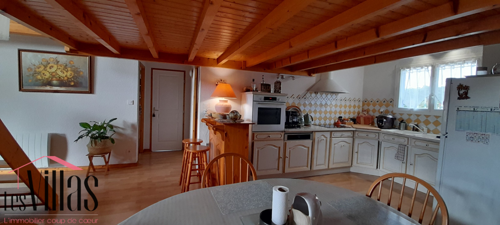 La cuisine ouverte est entièrement équipée.