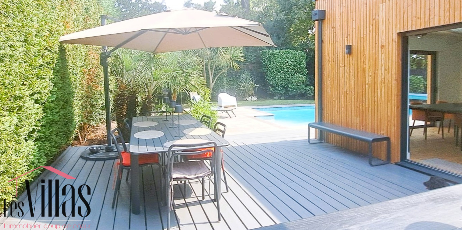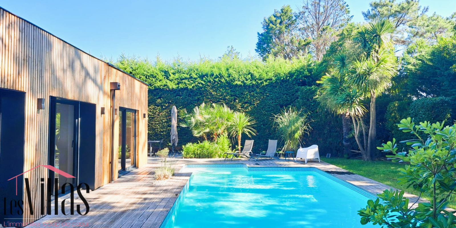 Piscine de 10 x 5 m au fond progressif chauffée, pool house avec cuisine d’été, garage de 45 m2 pouvant accueillir une dépendance, stationnement extérieur pour plusieurs voitures.