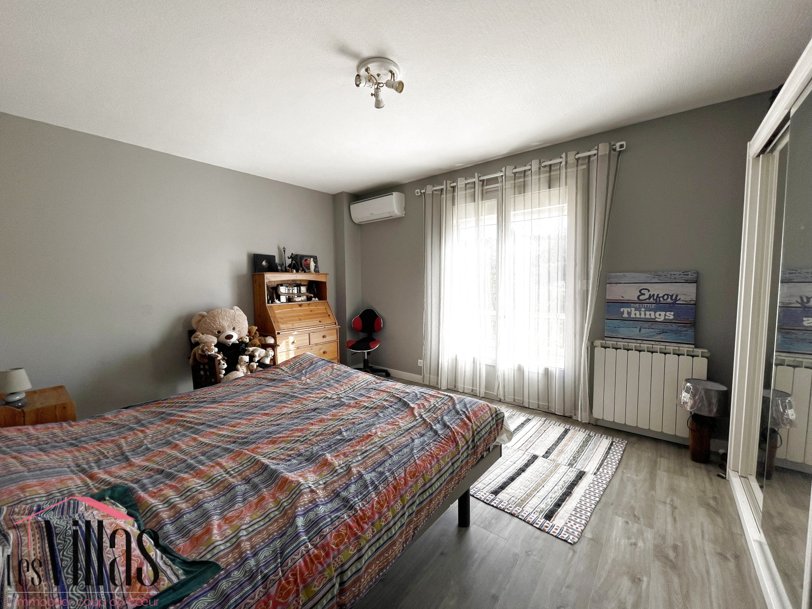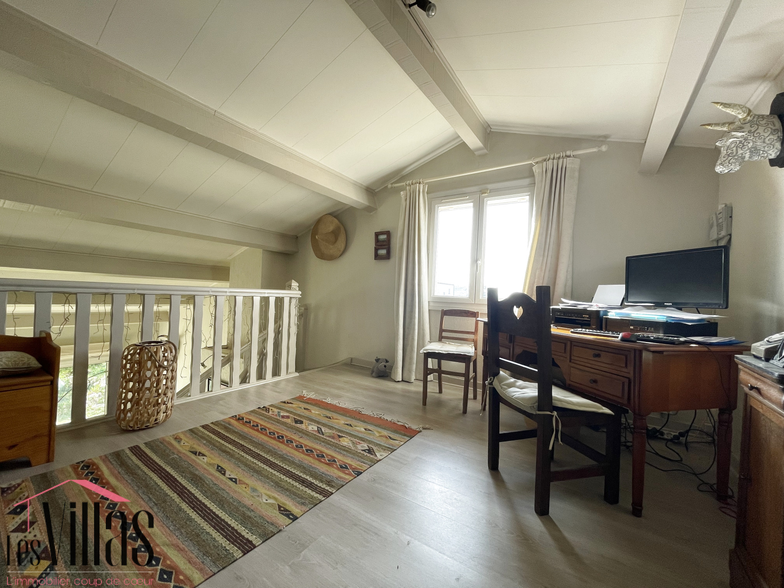 À l'étage, une mezzanine pouvant accueillir un espace bureau; deux grandes chambres et une salle d'eau indépendante complètent l'espace nuit.