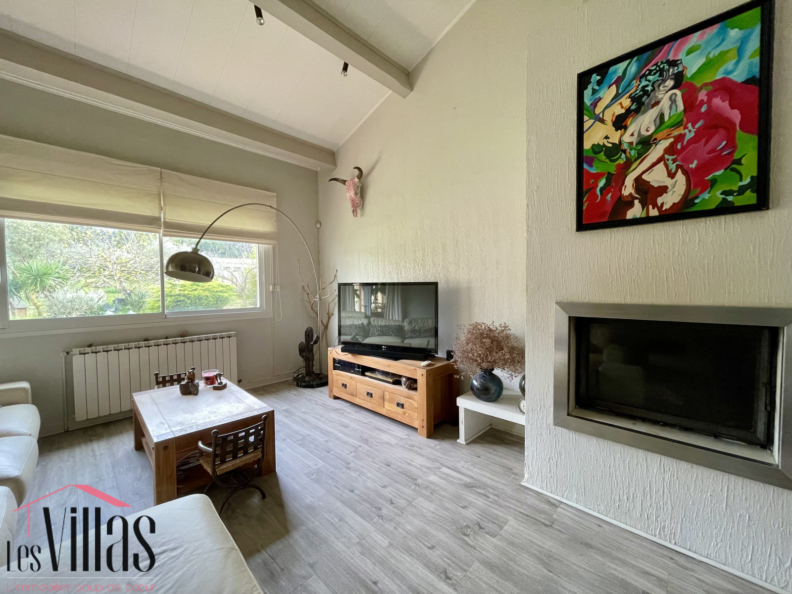 La maison présente une belle pièce de vie offrant des espaces distincts tels que la cuisine ouverte, le salon avec plafond cathédrale et cheminée, et la salle à manger. Sur ce niveau, deux chambres et une salle d'eau offrent confort et praticité. La véranda fait le lien entre l'intérieur et l'extérieur et permet de profiter de la vue sur le jardin.