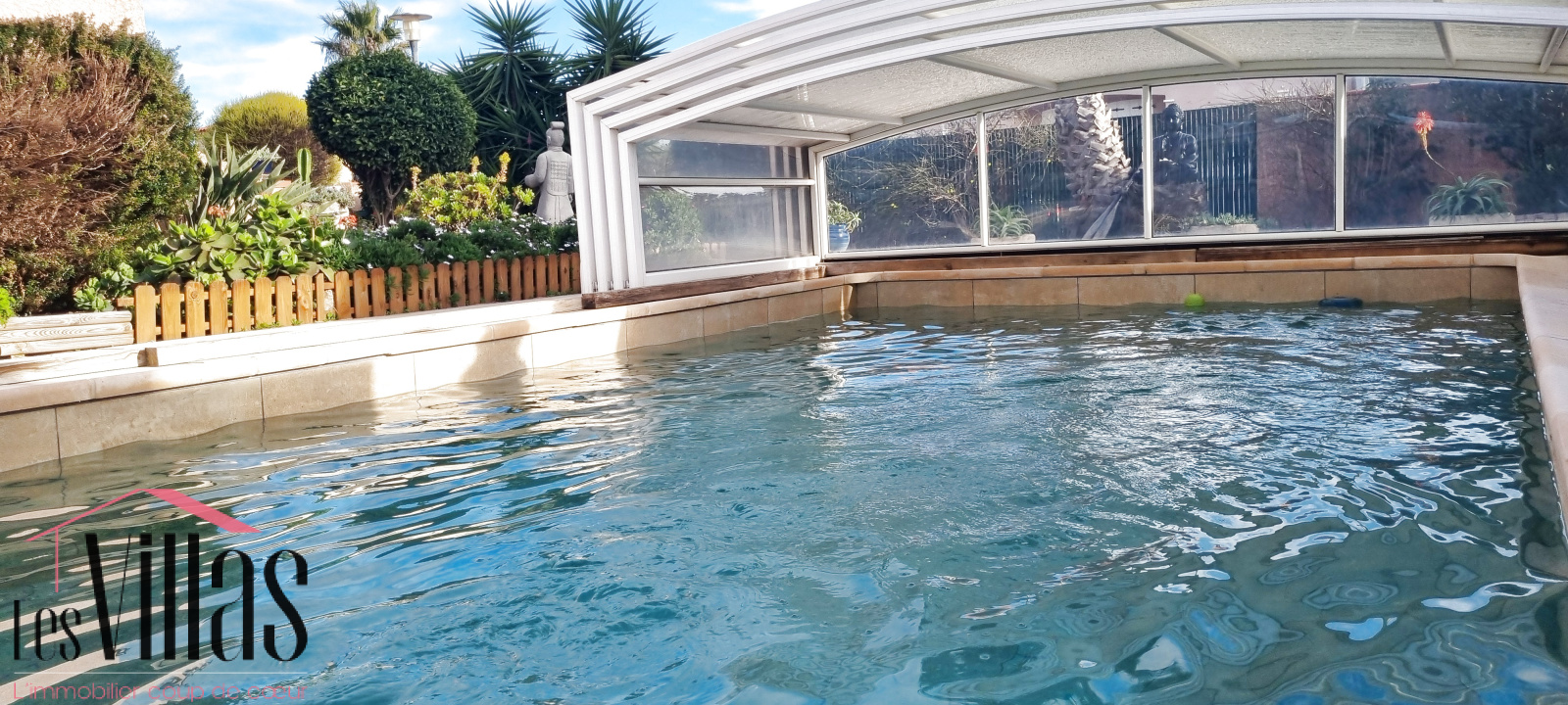 La piscine carrelée est équipée d'un système de nage à contre-courant. Son dôme électrique vous permettra d'utiliser la piscine presque toute l'année et d'être en sécurité pour les enfants.