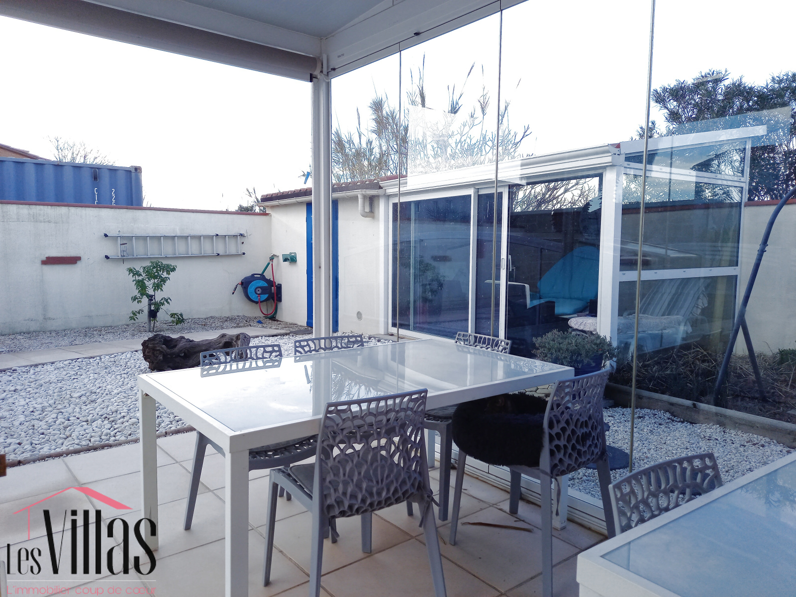 Une belle véranda vitrée et ombragée peut accueillir une grande table pour vos repas entre amis, même hors saison. Plusieurs terrasses vous permettront de profiter des extérieurs en toute saison.