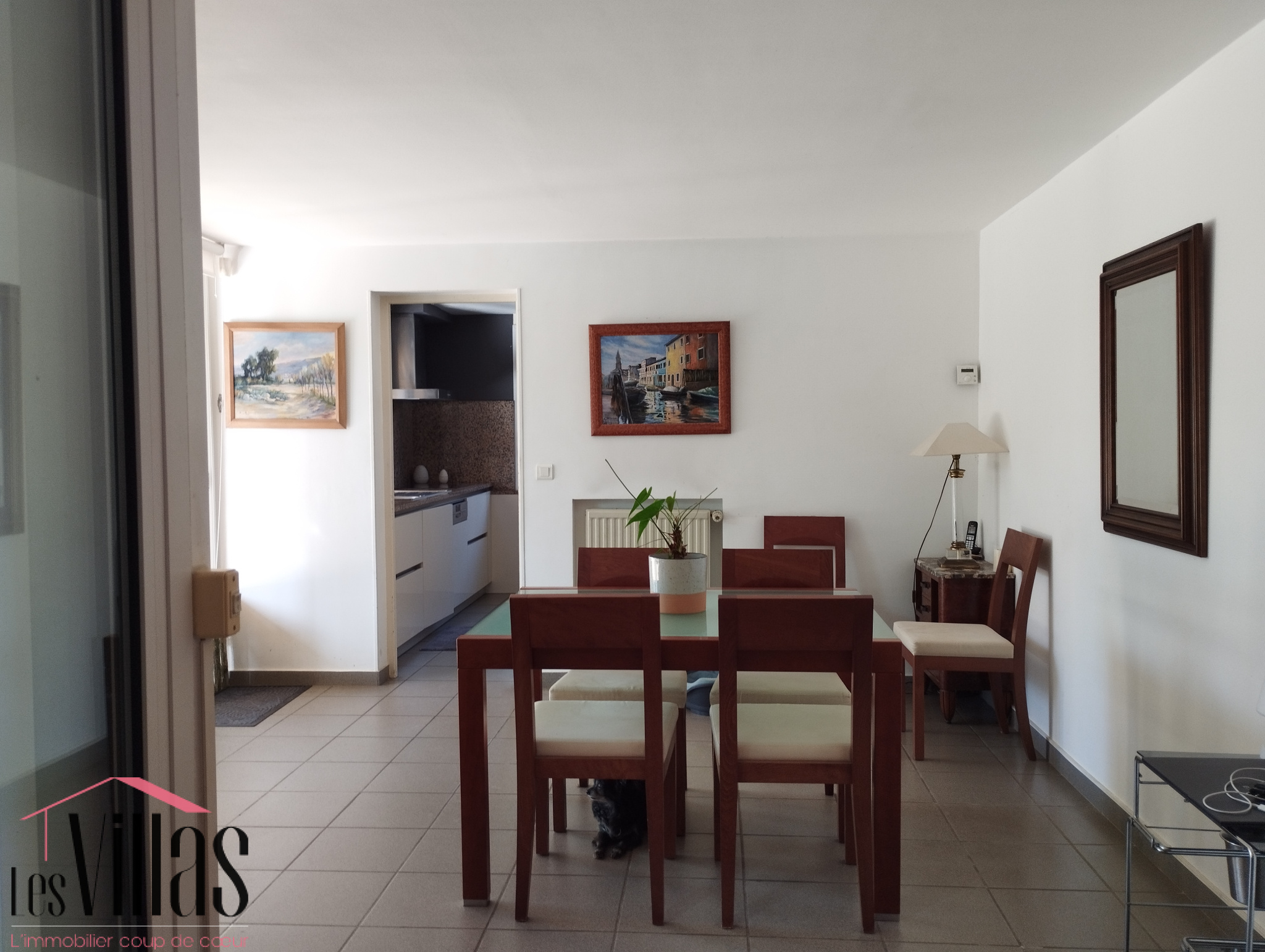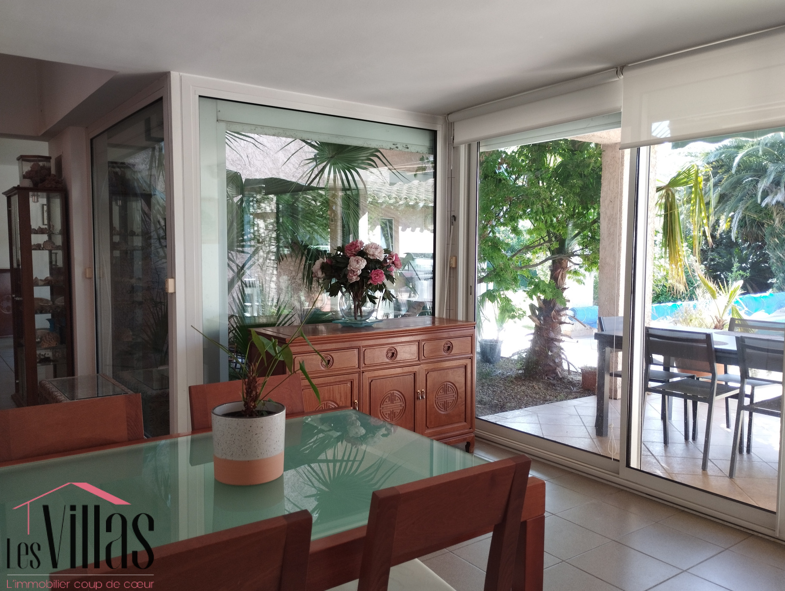 Dès l’entrée, la maison séduit sa luminosité. Les larges baies vitrées et le jardin d’hiver prolongent naturellement les espaces de vie vers l’extérieur, offrant une atmosphère douce et ouverte sur le jardin. La pièce de vie, composée d’un salon et d’une salle à manger, s’accompagne d’une cuisine indépendante équipée, complétée par un cellier fonctionnel et un espace de rangement supplémentaire.