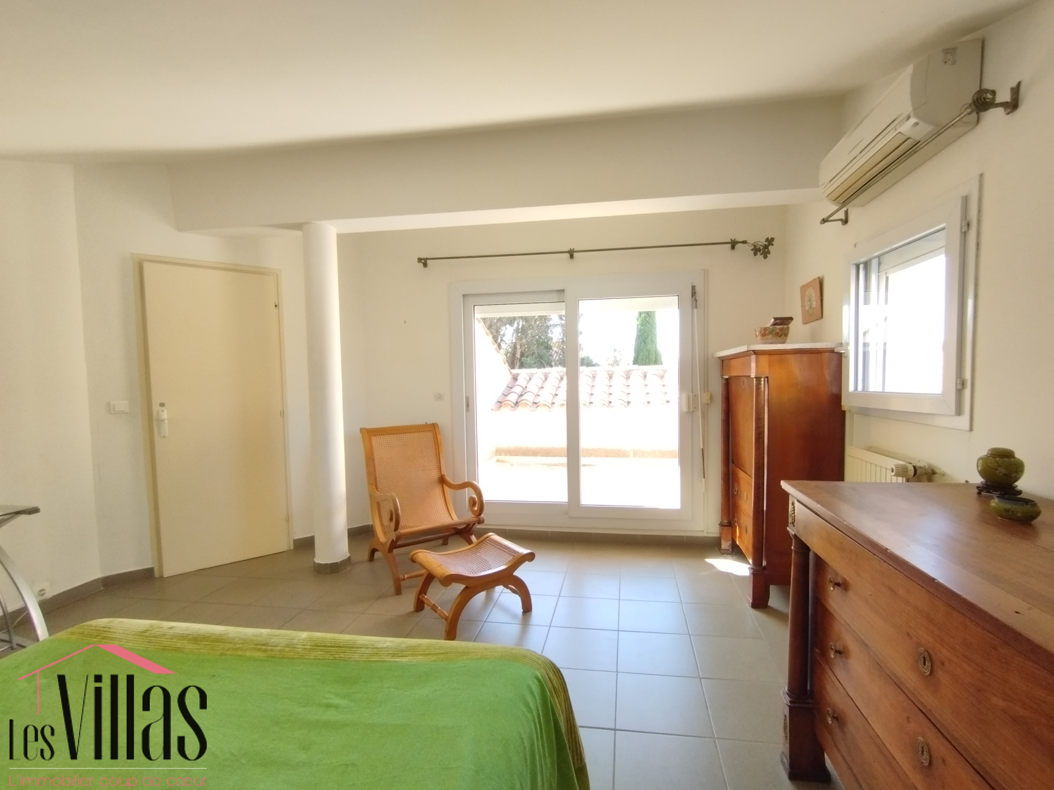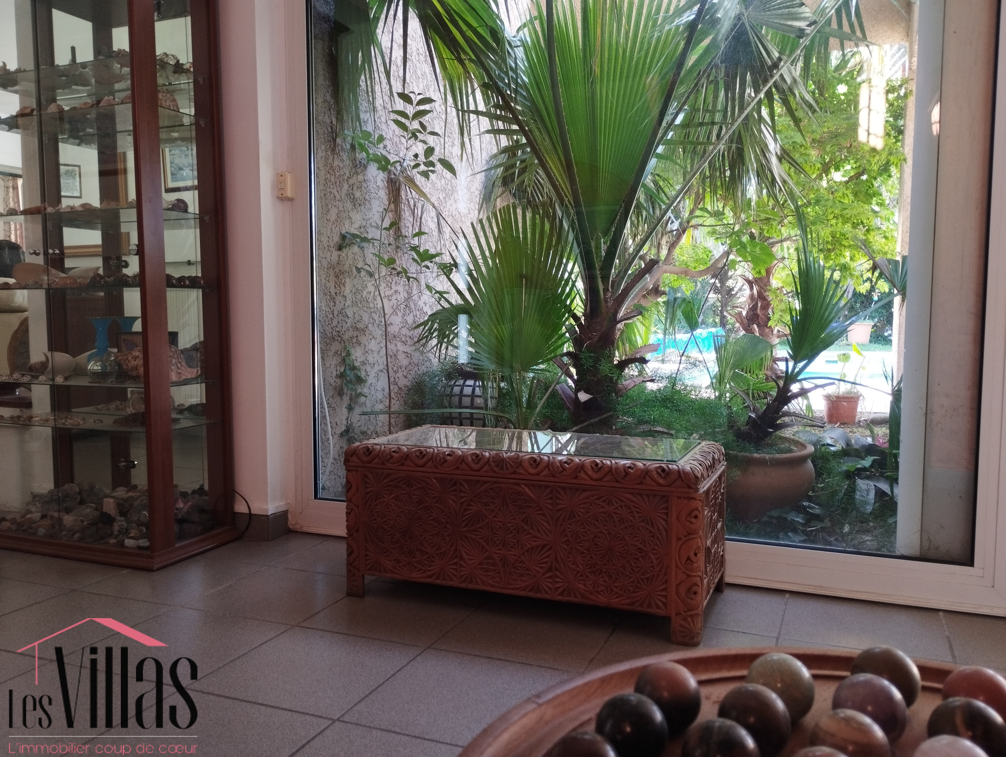 À l’extérieur, le jardin arboré invite à la détente. Une grande piscine, accompagnée d’un bassin plus petit dédié aux enfants, s’intègre harmonieusement dans cet environnement verdoyant. Un pool house entièrement aménagé complète l’ensemble et peut facilement être un studio indépendant pour recevoir famille ou amis.