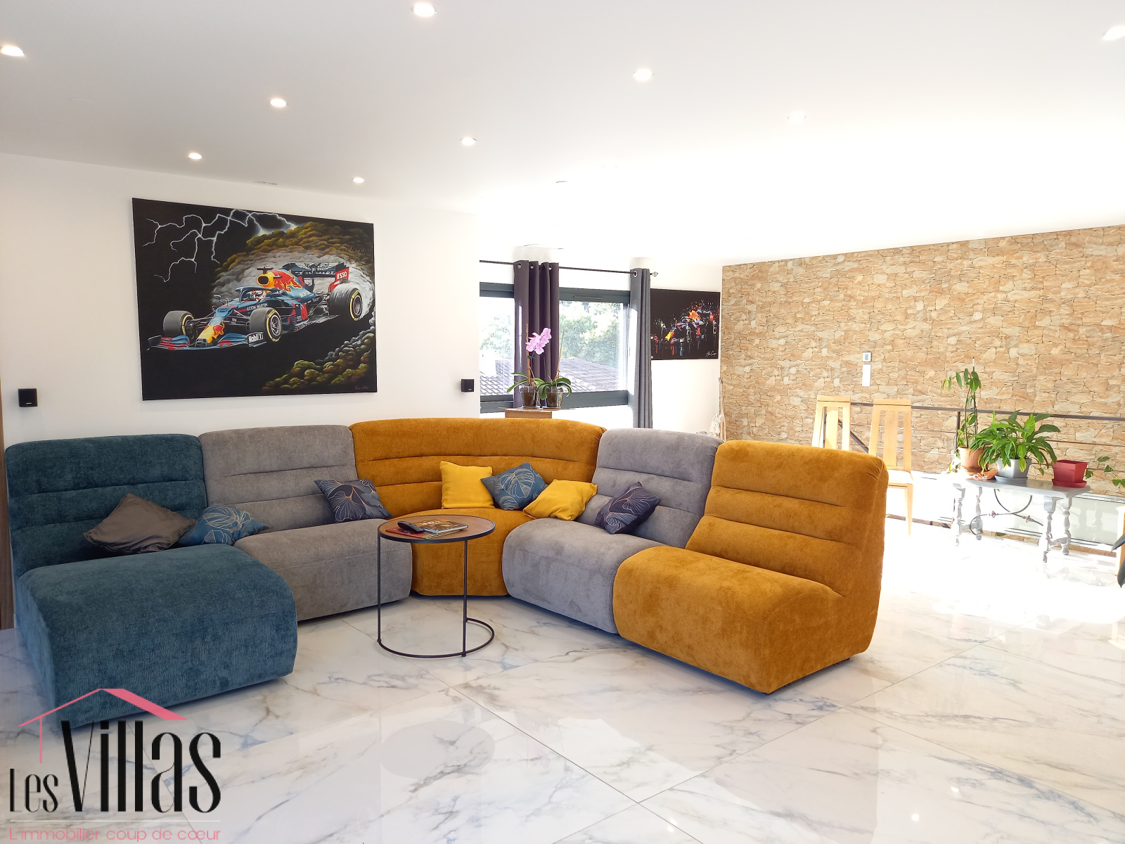 Bel espace de vie de 61 m2 traversant Est Ouest, aux larges ouvertures vers jardin et piscine.