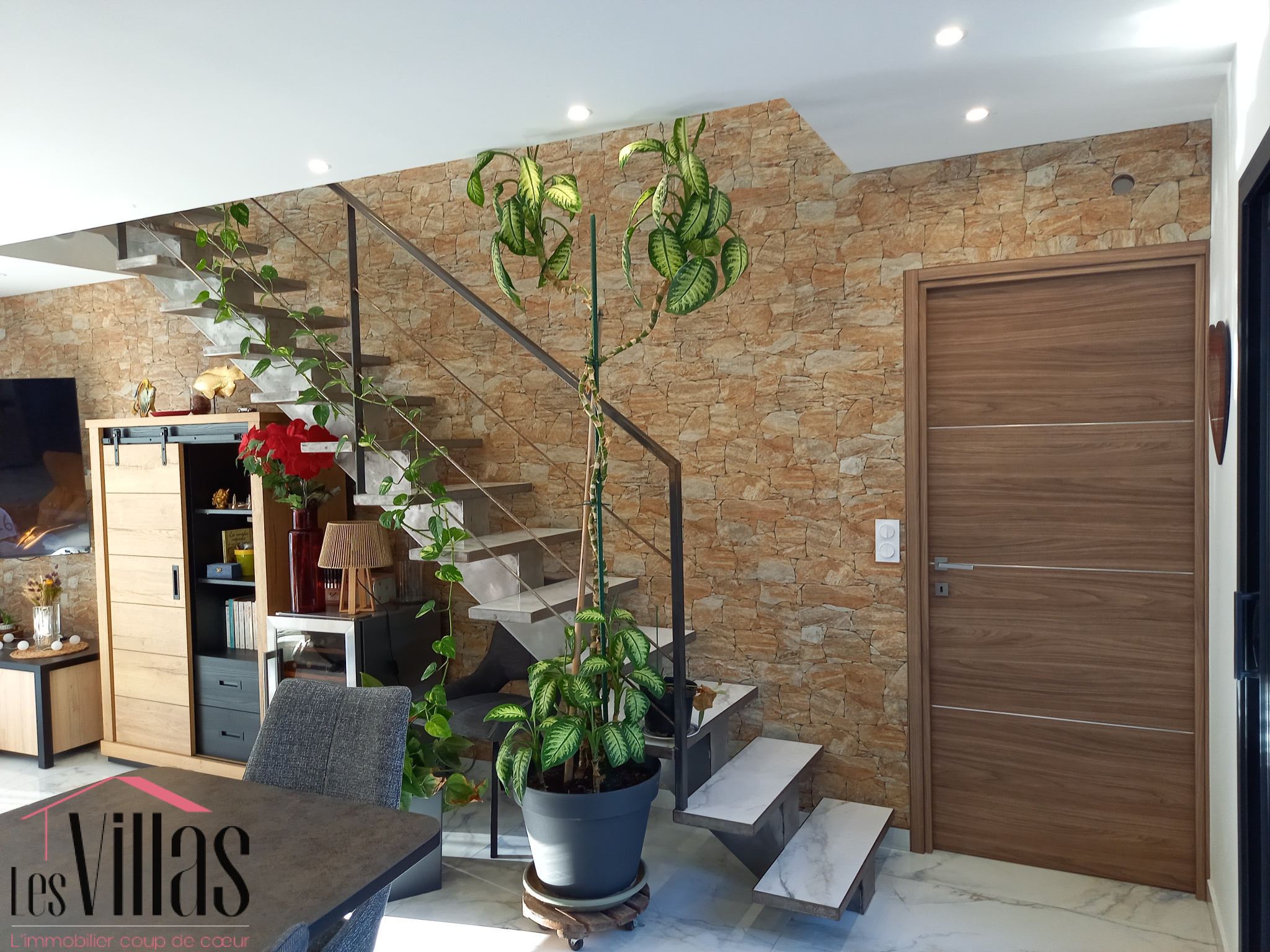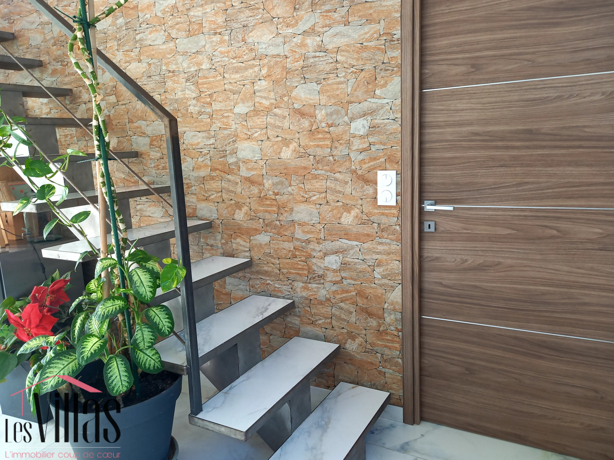 - l'escalier et son parement de mur, effet pierre naturelle