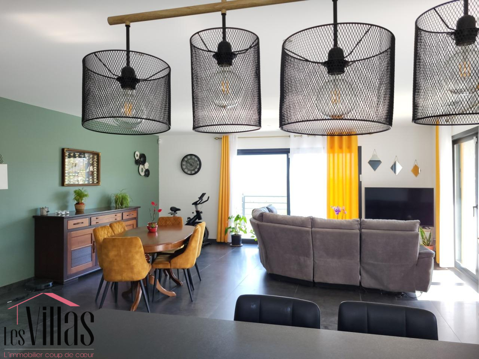 La cuisine américaine, équipée d’un îlot central, est entièrement aménagée. Attenante, un cellier de 4 m² idéale, un grand placard de rangement ainsi que d’un espace dédié au linge et des toilettes.