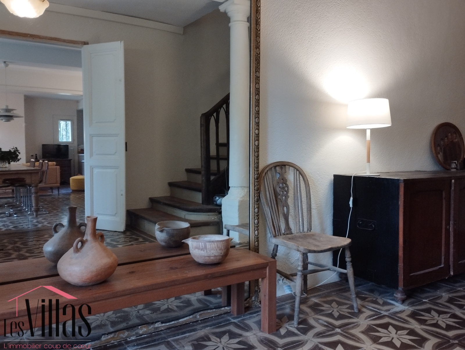 Cette propriété offre 242 m2 de surface habitable + 94 m2 de dépendances sur un terrain spacieux de 4300 m2. La végétation luxuriante et les platanes centenaires donnent le ton d'une atmosphère paisible et ressourçante.