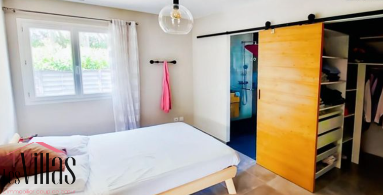 Toujours de Plain pied, vous aurez une suite parentale avec dressing et salle d'eau + un wc indépendant et une très grande pièce de 21 m2 pouvant servir de bureau, pièce de jeu ou chambre d'amis.